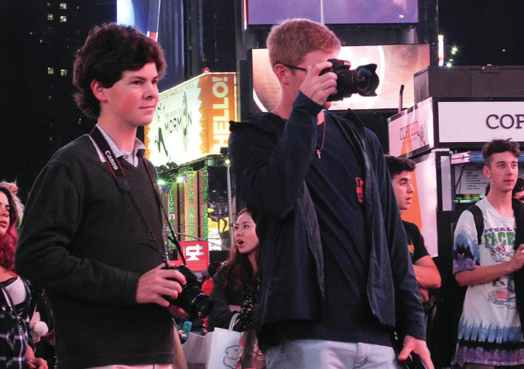 7. LIGHTS, CAMERA, ACTION: Sophomore Ned Dockery and junior Bryce Miltenburger take photos in Times Square. Photography students were offered the opportunity to travel to NYC to enhance their skills. “I learned how to be a more confident photographer while taking pictures in New York,” Dockery said. “The people are used to getting their picture taken, so most don’t mind if you get near them for a photo.”
