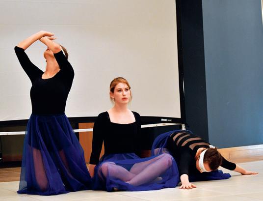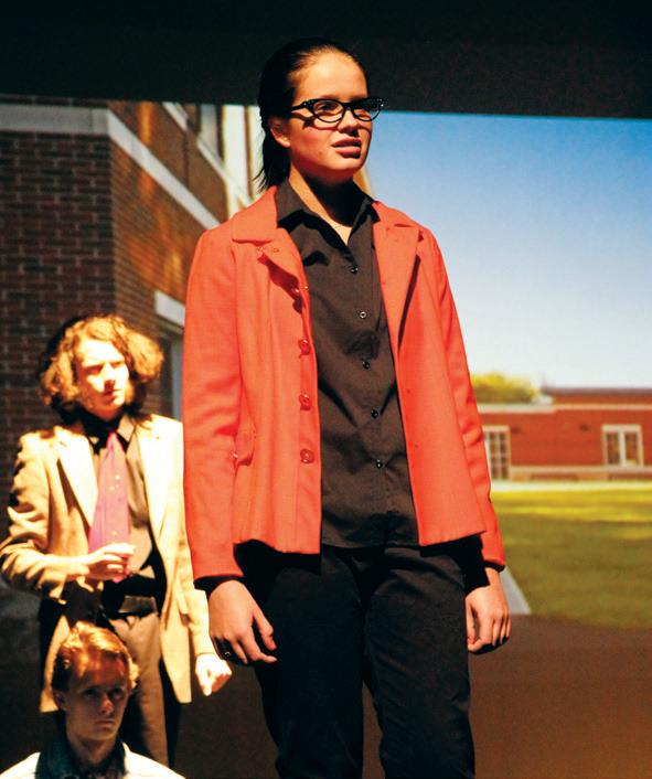 THE SHOW MUST GO ON During dress rehearsal in the Bray Theater on Oct. 16, sophomore Madison McCoy (top) plays the role of Mrs. Whatsit, and freshman Emily Lichty (left) plays the role of a teacher in “A Wrinkle in Time.” Based on the popular book, the fall play was performed for three days. This was McCoy’s second year participating in the Upper School play. “I like that [Mrs. Whatsit] is really animated and bubbly,” McCoy said. “It’s fun to play a character that’s happy all the time.”