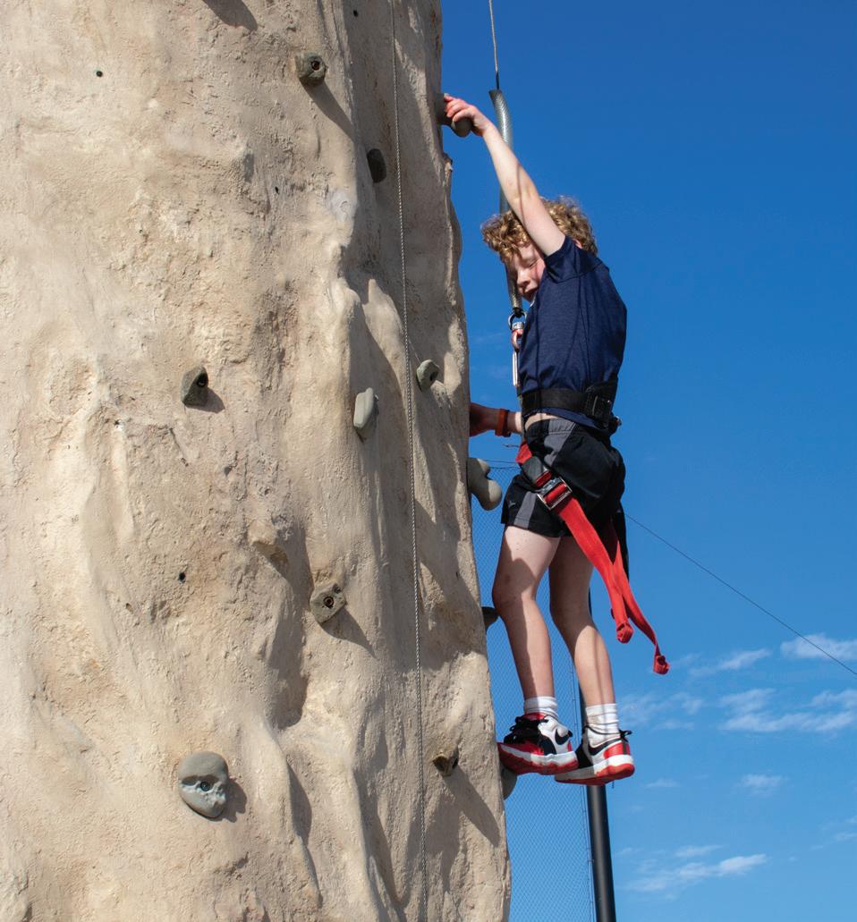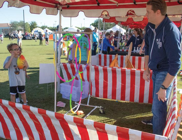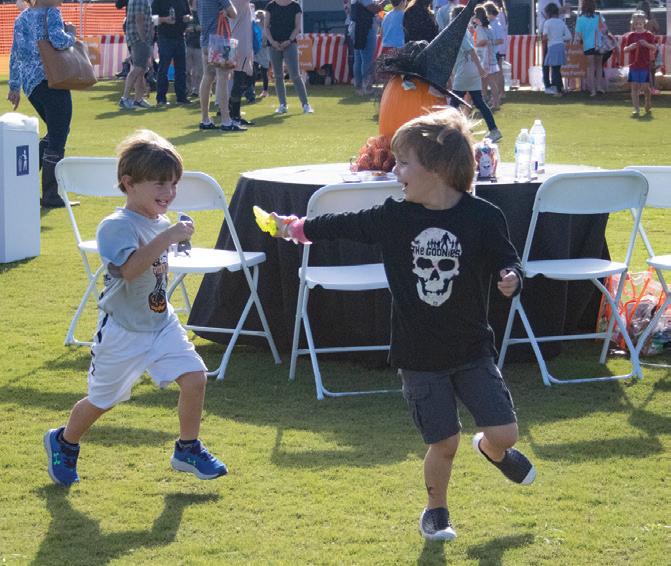 The beloved Halloween-themed festival included volunteerled carnival games, bounce houses and food trucks. The Eerie Emergency Room and the Teacher Fortune Teller tent made their appearance as traditional Spooktacular activities. New additions allowed students to dunk Lower, Middle and Upper School teachers at the dunk tank and scale a rock climbing wall.