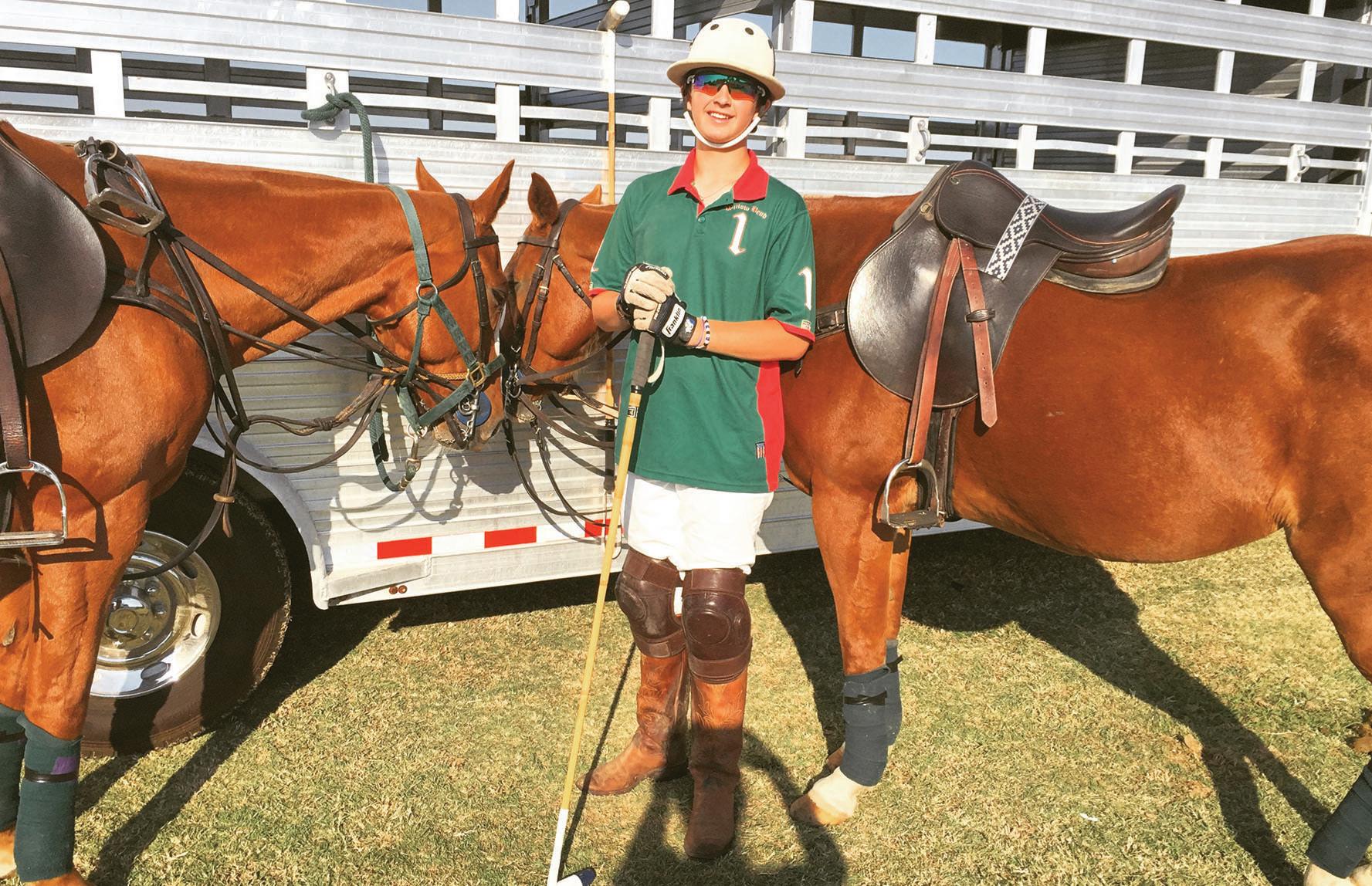 Carrell now plays indoor and outdoor polo at the Willow Bend Polo Club in Little Elm, Texas. The indoor team, Interscholastic, consists of only high schoolers, while outdoor polo is played by high schoolers and adults. Carrell’s indoor team is composed of himself, a