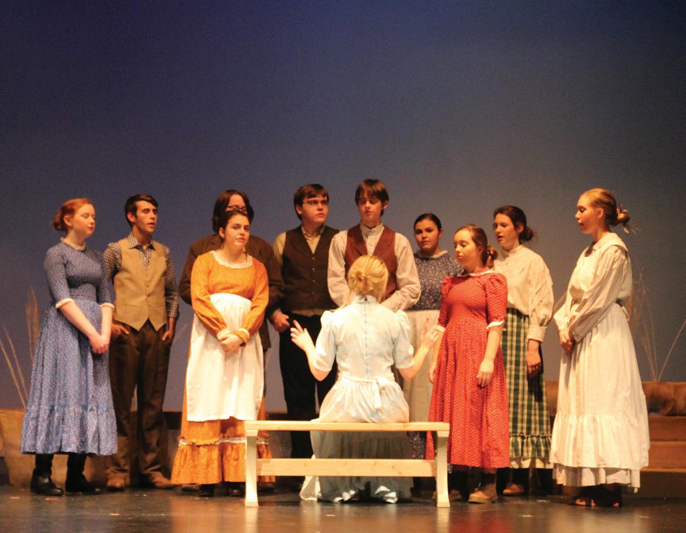 3. WE’RE ALL IN THIS TOGETHER: The cast of the fall play, “Anatomy of Gray,” performs on Nov. 2. The play focused on a doctor in a small town and two women who were interested in him. “Once the light went up and it was time to [perform] for real we knocked it out of the park,” senior Alexa Lutz said. Photo by Rachel Morrow