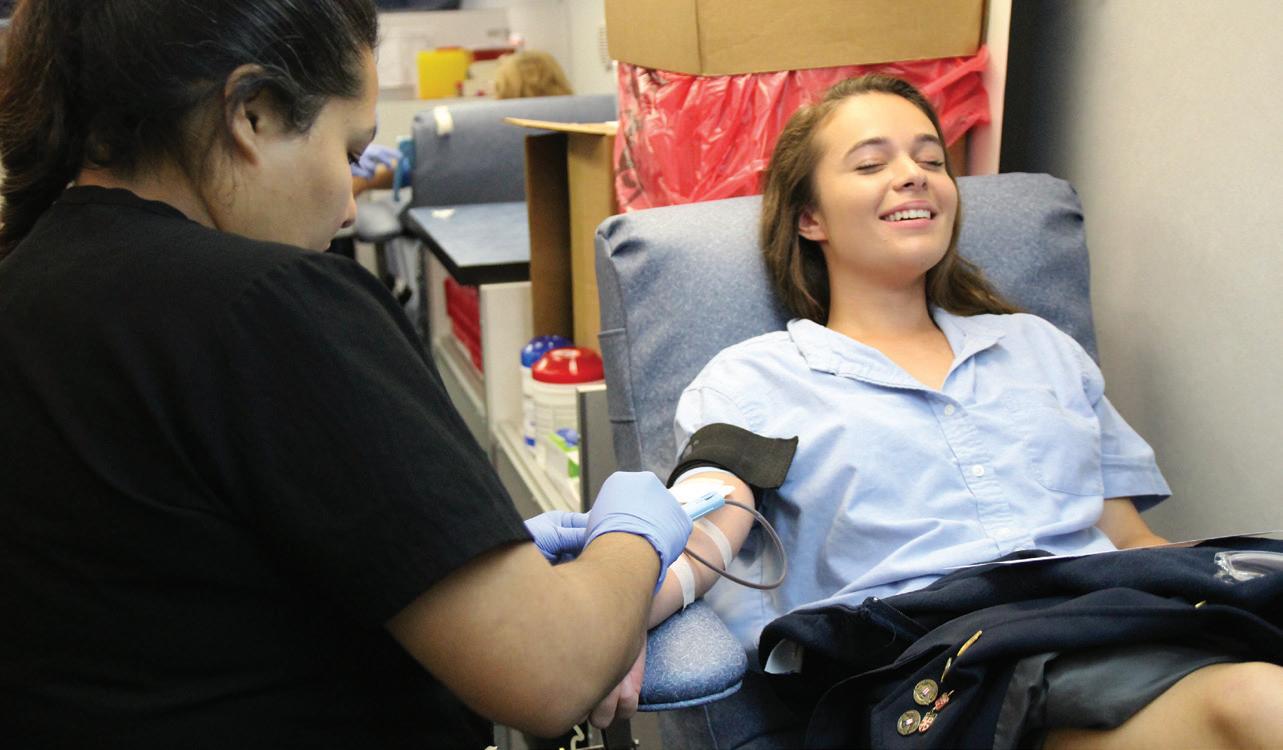 6. PUMP IT UP: Senior Emilie Owens donates blood through the NHS blood drive on Nov. 15. With no community service hours given this year, 48 people still participated. “I’m terrified of needles so the hype was worse than the actual pain,” Owens said. “I got super dizzy in the middle so they gave me powerade so I was good.”