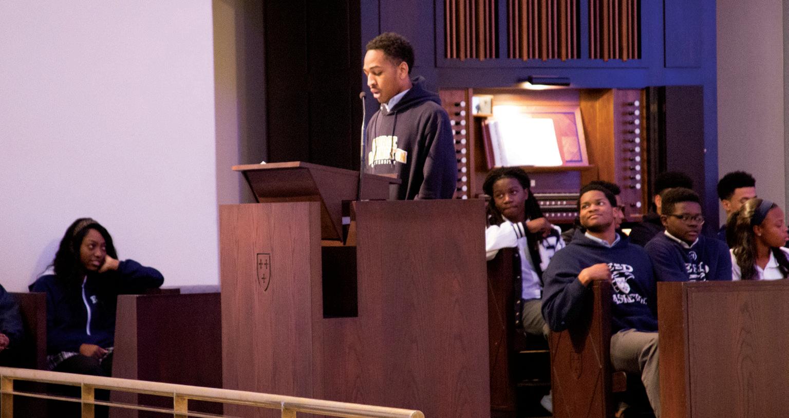 3. KEY TO SUCCESS: One of Time’s 100 Most Influential People and Ford Foundation President, Darren Walker, shares his take on what determines success to the Upper School student body in Chapel, Feb. 27. “It’s inspiring to have someone as successful and caring as he is be able to come and speak to us,” senior Cameron McGee said. Photo by Ashley Owens