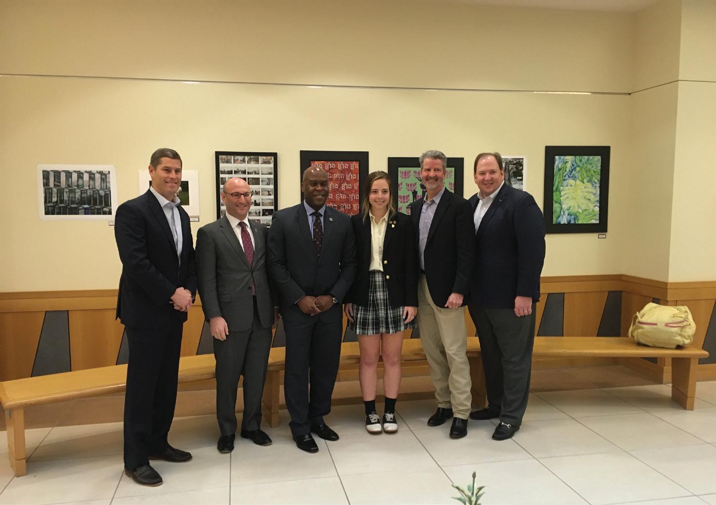 2. CRIMINAL MINDS: Senior Gilllian Campbell poses for a photo opt with Dallas FBI Special Agent in Charge, Eric Jackson (left) and booster dads at the annual ESD Dads’ Partnership Breakfast on Feb. 6. “Mr. Jackson talked about his father and how he shaped him to lead the Dallas FBI today,” Campbell said. Photo courtesy of Emma England