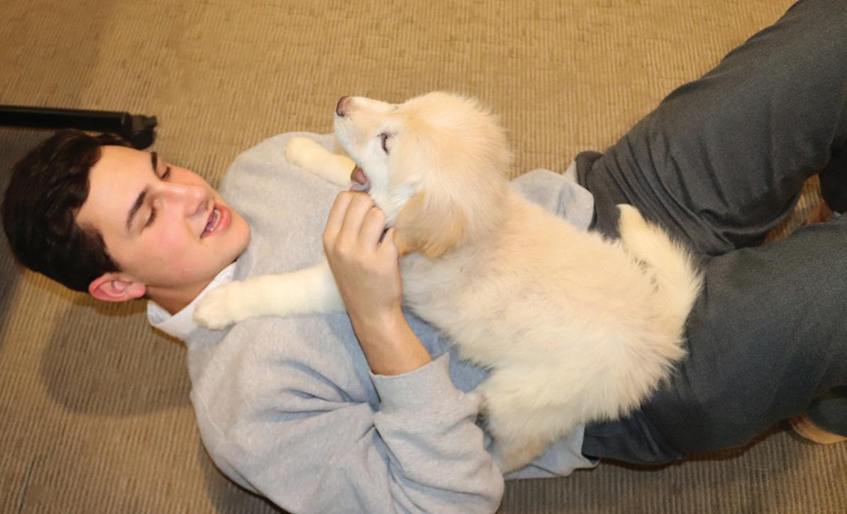 4 PUPPY LOVE: ESD’s new club, Friendly Fosters, started by junior Sarah Hands late last semester, were visited by two foster puppies from Operation Kindness on Feb. 9. “It is amazing to be able to see the joy that the foster pets can bring people and at the same time being able to help the animals is a really great feeling,” junior Garrett Levy said. Photo by Sydney Rezaie
