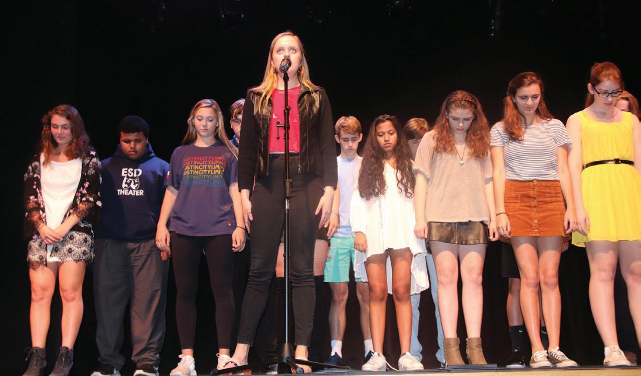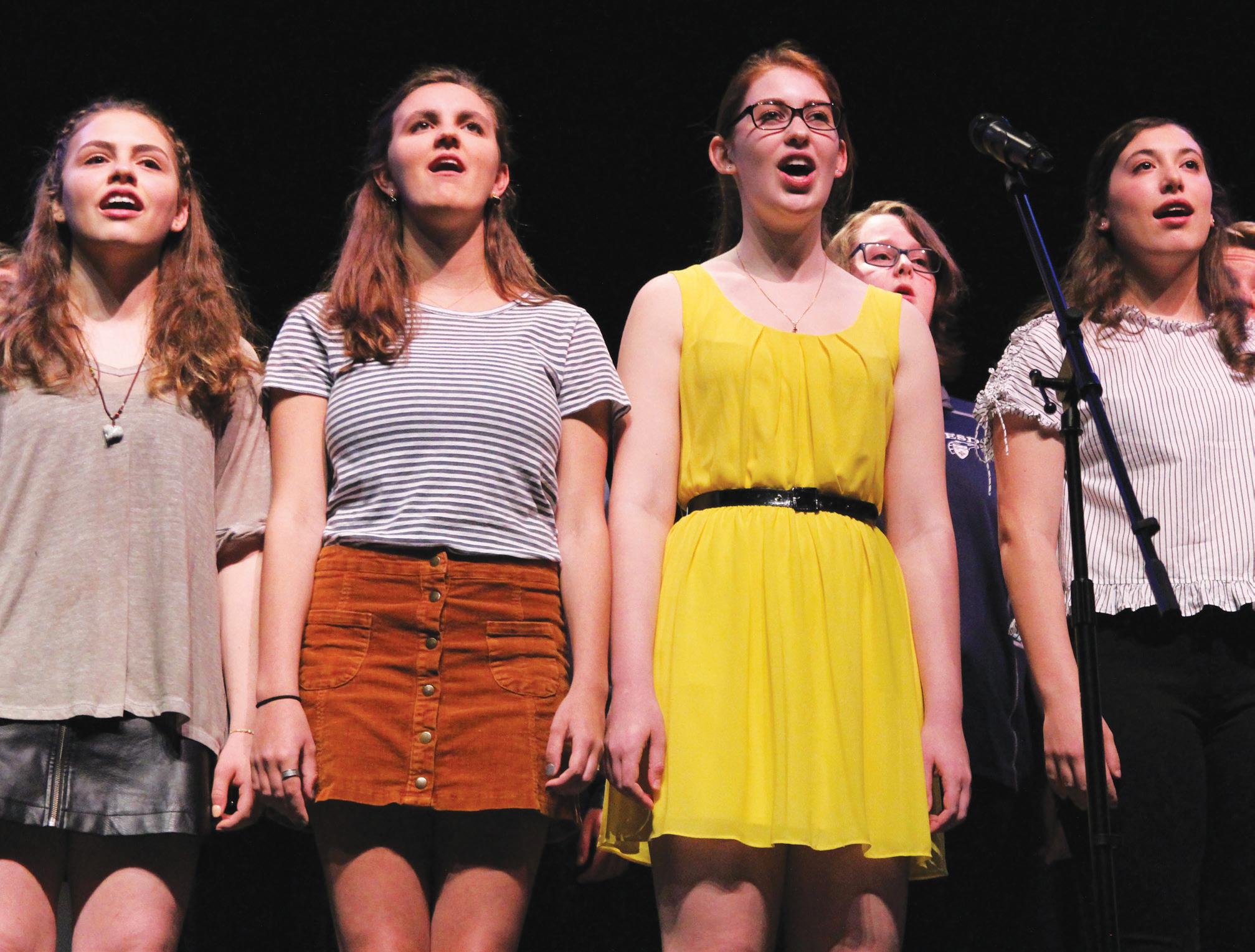 6. RAISE YOUR VOICE: Senior Julia Beckel takes center stage, backed by other choir members, during this year’s Cabaret Night on April 19. The group finished with “This is Me” from “The Greatest Showman.” “It was so much fun to sing lead at our last choir concert of the year,” Beckel said. Photo by Sydney Rezaie