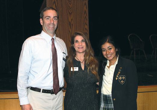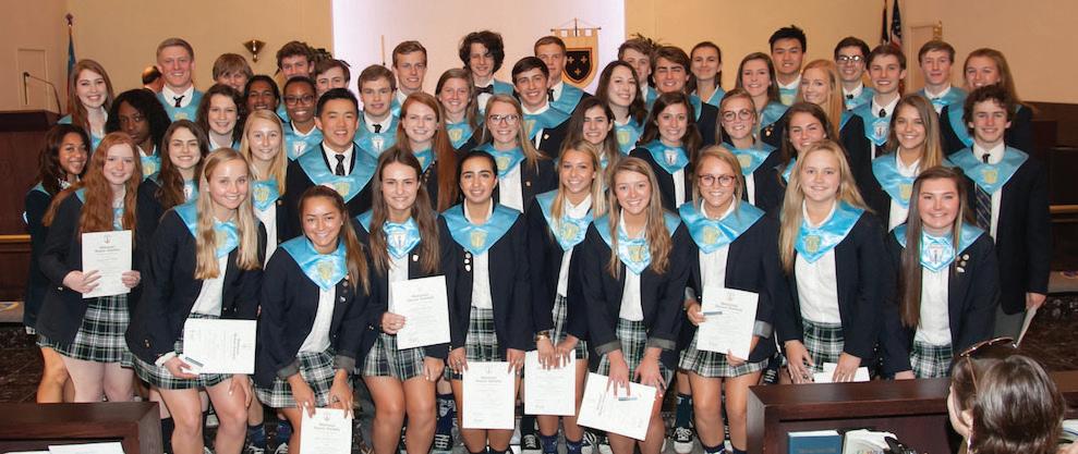 Guest speaker, alum Claire Cahoon [‘13], a SMU law student, spoke to the inductees. After the speech, pins and stoles were handed out by Head of School Meredyth Cole, Head of Upper School Henry Heil and Assistant Head of School Jeff Laba as recipients received their certificates.