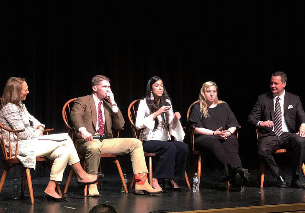 7. TALK IT OUT: Juniors and seniors attend the fifth annual Alumni Discussion Panel with alumni Grady Alsabrook ‘91, James Clement ‘02, Becca Genecov ‘11 and Luisa Navarro ‘08 on April 19. “It was inspiring and eye-opening to meet people that went to our school and are so successful,” senior Braden Allen said. “[It was] interesting to see what ESD can do for its students.” Photo by Gwyneth Zogg