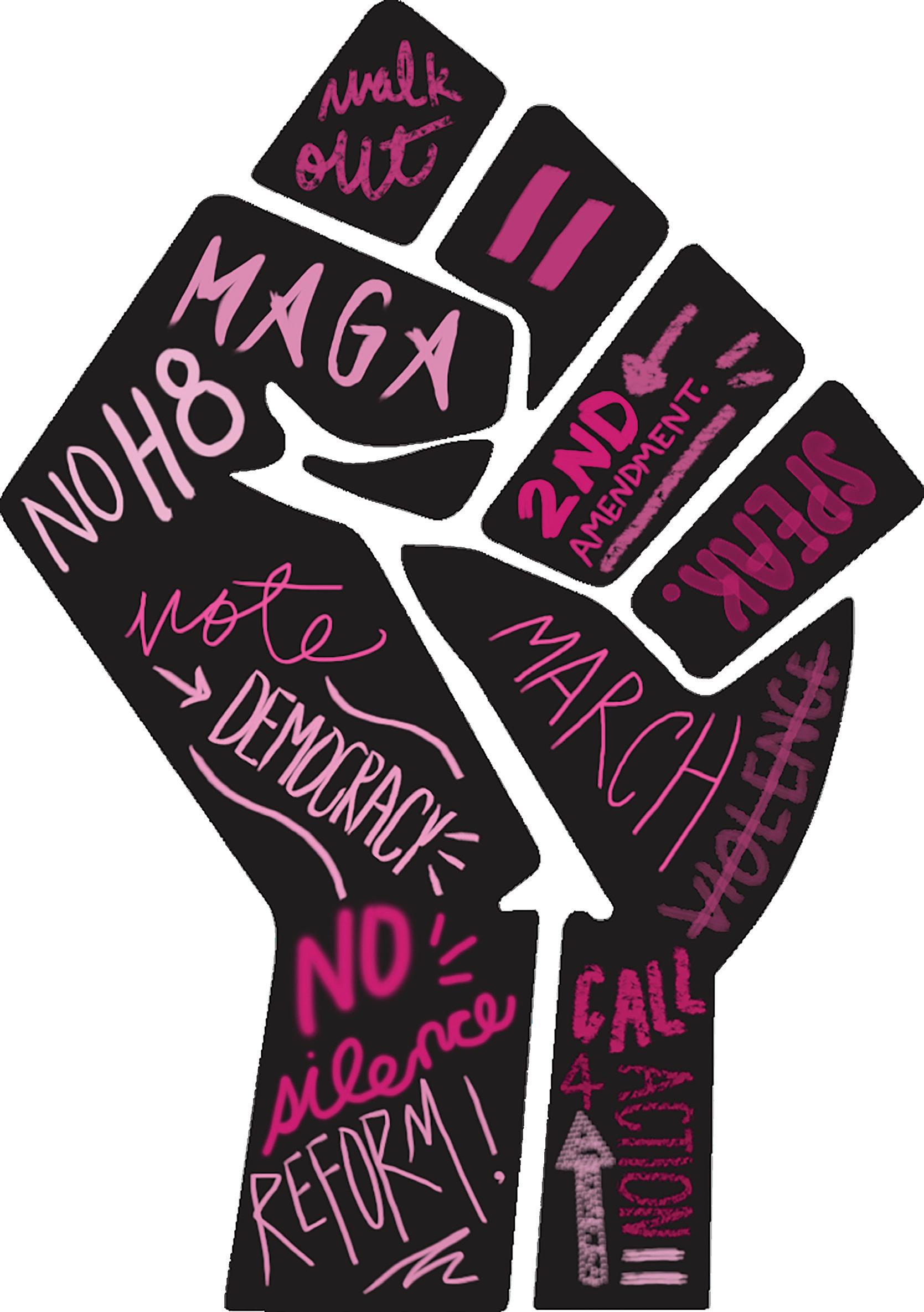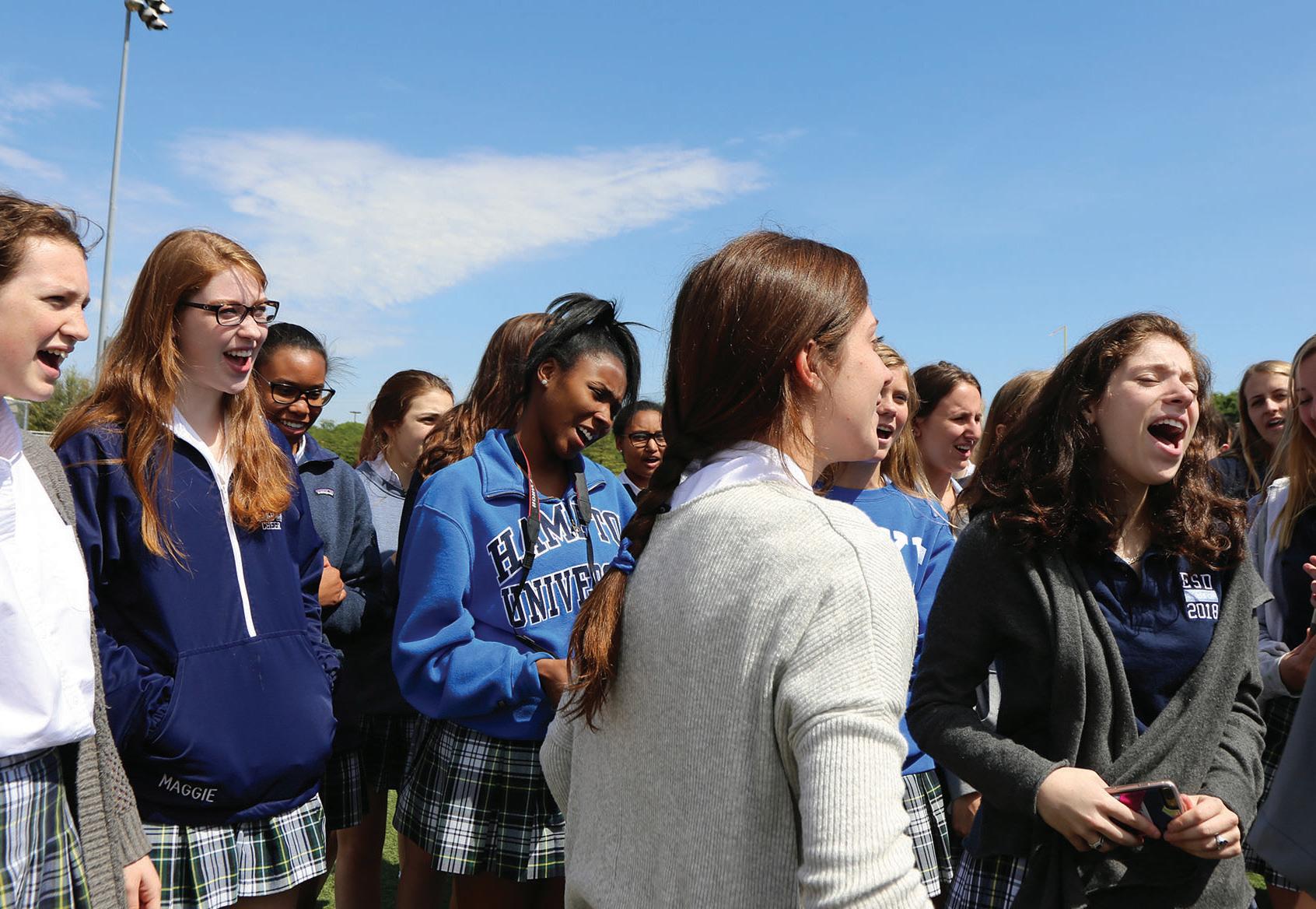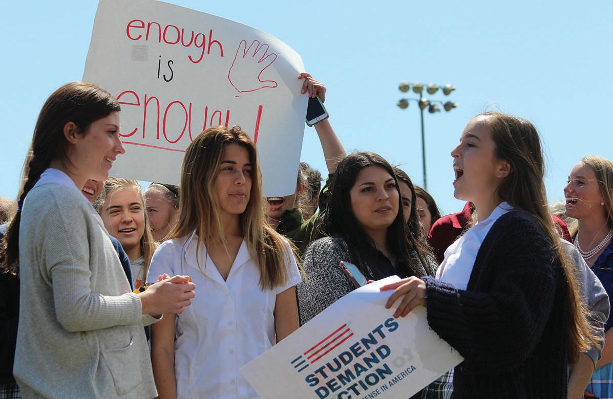 8. NO MORE SILENCE: Freshman Ava Thompson leads a chant after a moment of silence to honor those who died in school shootings during a walkout organized by Upper School students on April 20, the anniversary of the Columbine shooting. “I truly believe that no matter how young you are, you can make a difference,” freshman Susanna Newsom said.