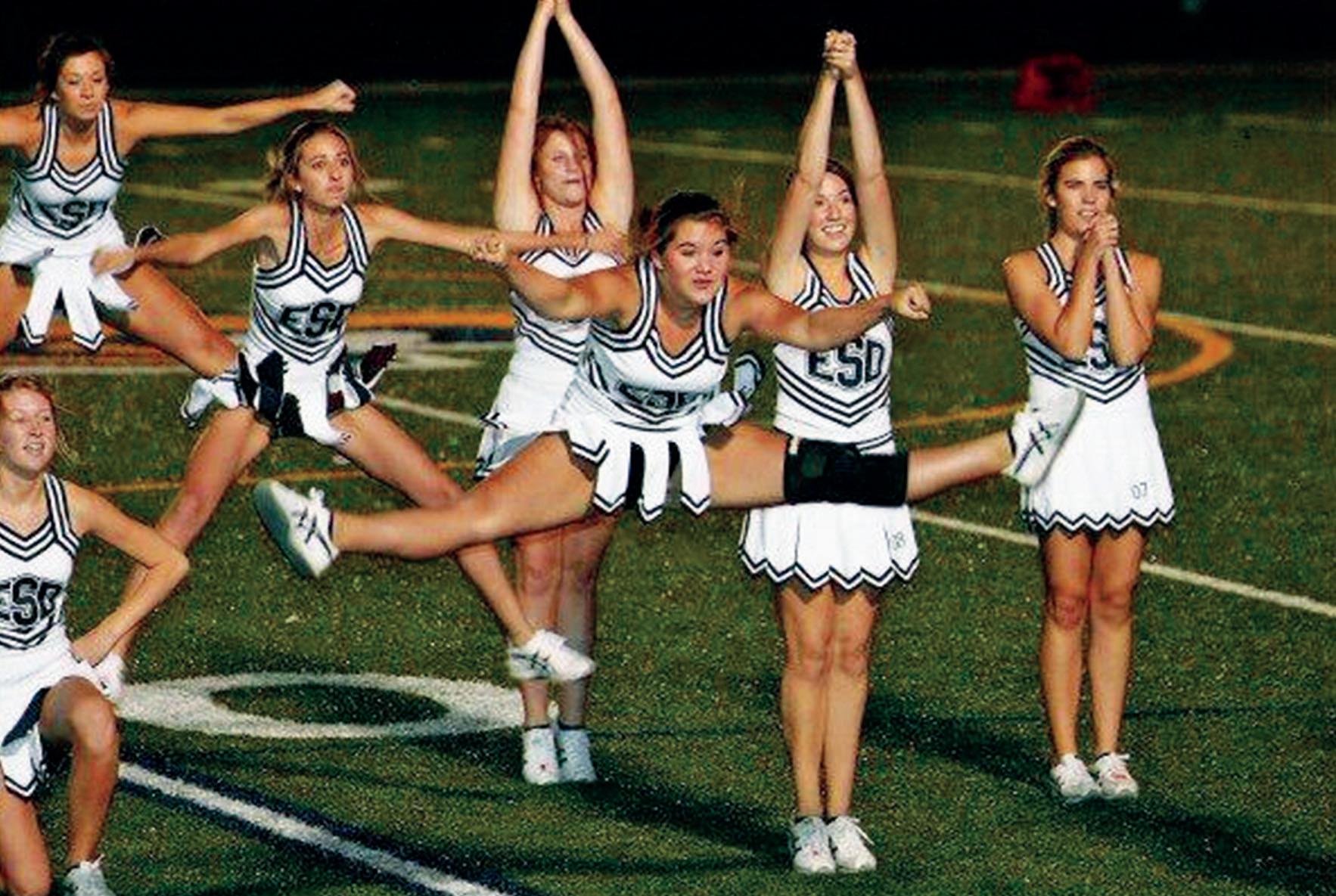 It’s a Friday night and Eagles fans cheer at the top of their lungs. Cheerleaders shake their navy and silver pom poms and prepare for the Eagle’s fight song, performed after every touchdown. Coach Megan Boyd alerts her cheerleaders that she is starting the music and remembers the time that she too was an ESD cheerleader.
