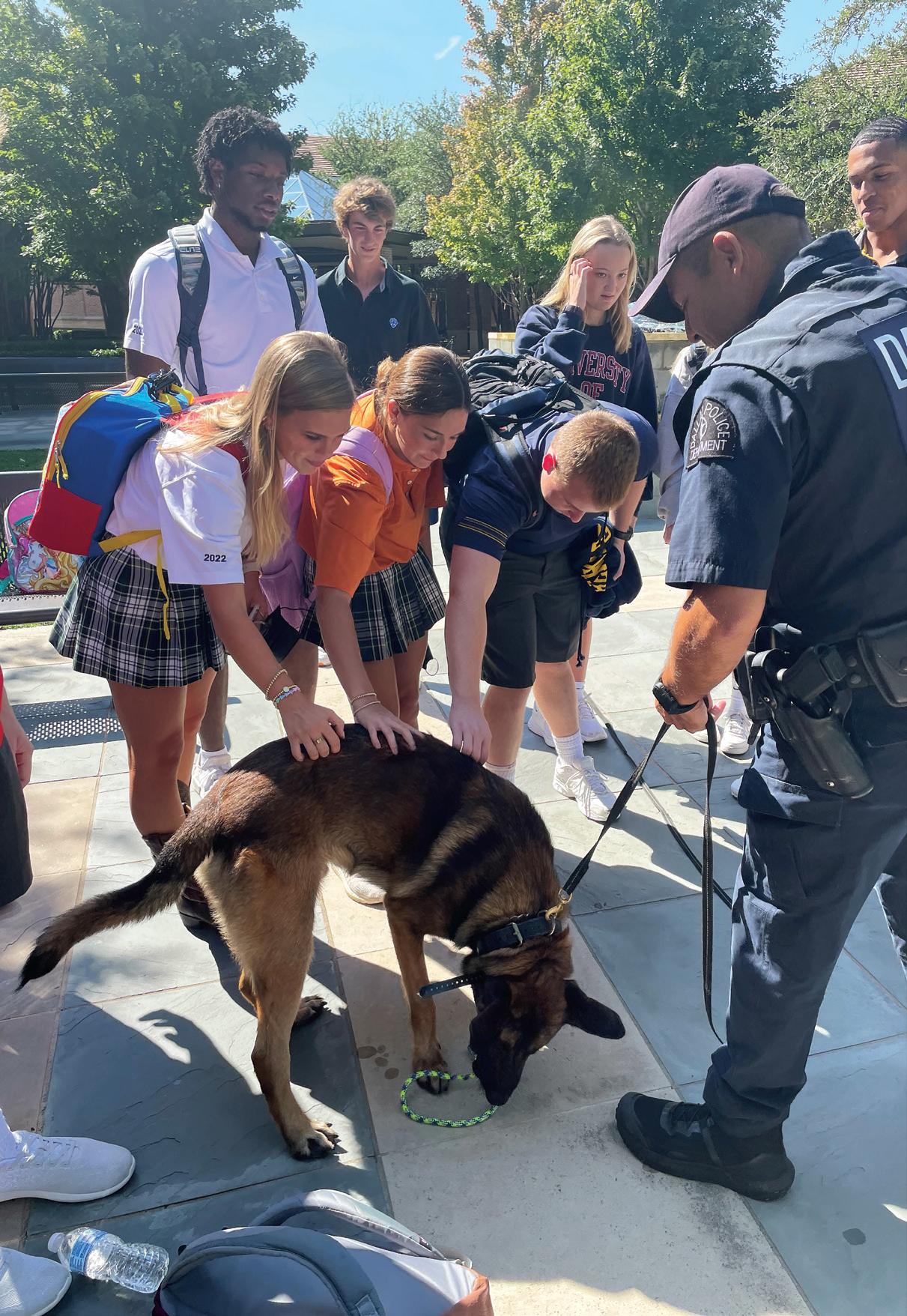 Since visitors have recently been allowed back on campus, visitors have been coming to school for the past few weeks to talk to students about concepts they are learning in the classroom. Upper school Spanish and science teachers Marcela Garcini and Amy Henderson, respectively, have each welcomed visitors to present in their classrooms. Henderson brought two police officers and two dogs from the K-9 unit for her psychology classes, and Garcini brought the Director of Welcoming Communities in Immigrant Affairs Cristina Da Silva to her immigration in America class.