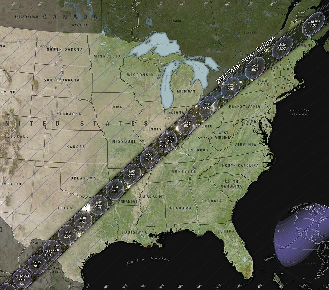 Maine and southern Canada. Around 44 million people across the continent live inside the 115-mile-wide path of totality, according to AP News.