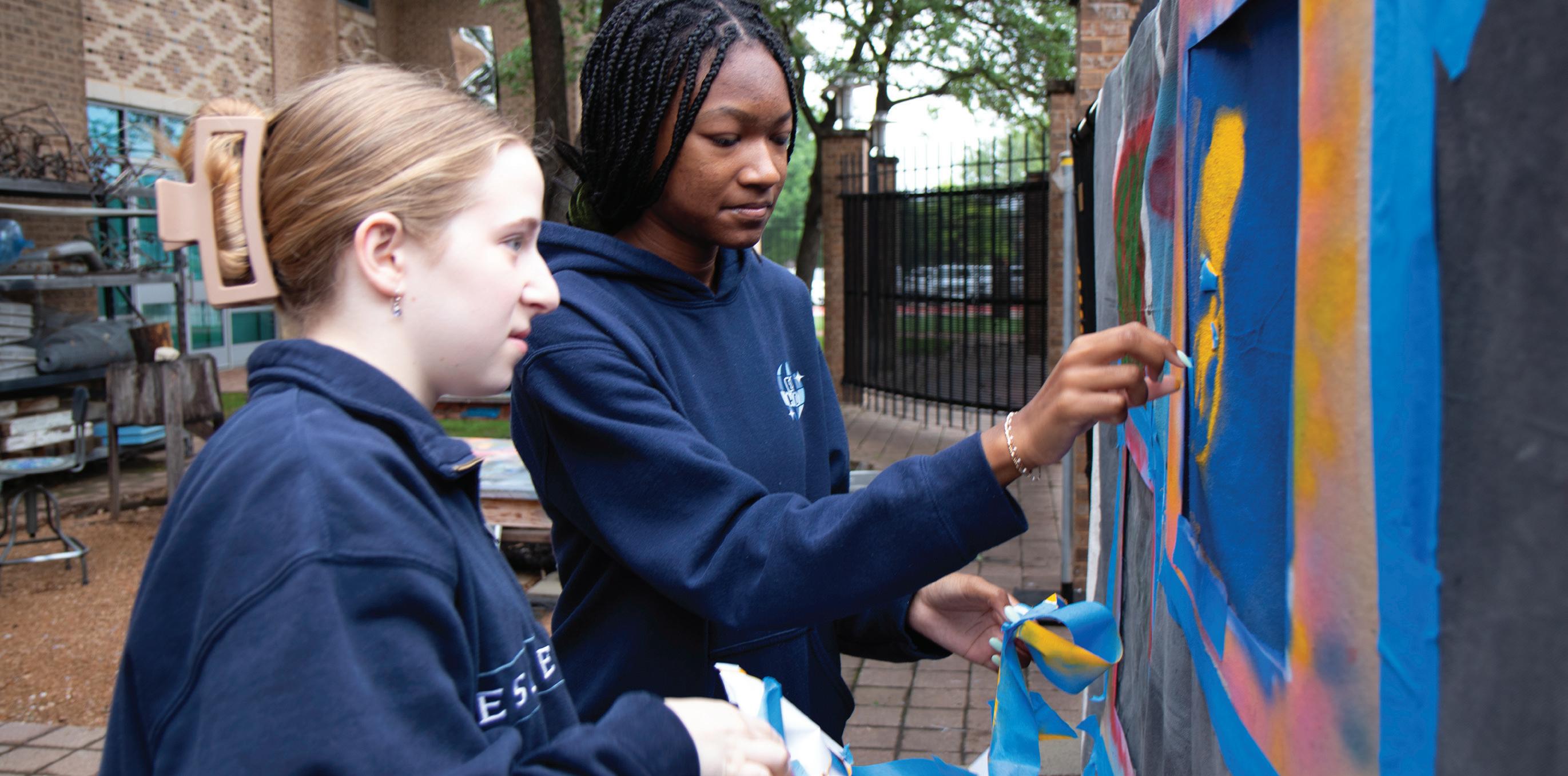 With the help of stencils and spray paint, sophomores Taylor Ampofo and Matilda Houghton add color and life to the labyrinth’s tarp. “This labyrinth is important because it shows the school in Tanzania how everyone in our community thinks different, but is able to put all of our ideas together into a piece of art, Ampofo said. On May 1, students gathered outside the sculpture studio to finalize the Global Day project to send to ESD’s sister school in Tanzania.
