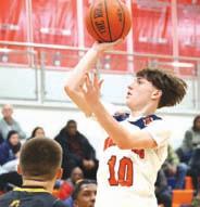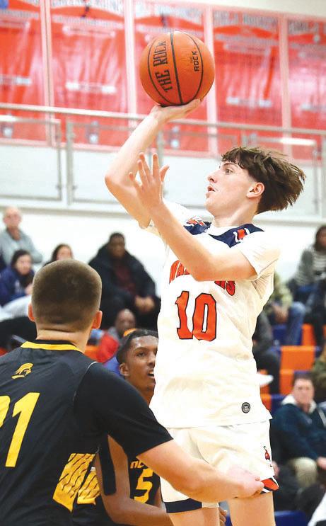 HIGH STYLE: Liverpool guard Luca Latocha (10) has an open jump shot in last Tuesday’s game against Henninger, where Latocha’s 10 points helped the Warriors beat the Black Knights 79-55.