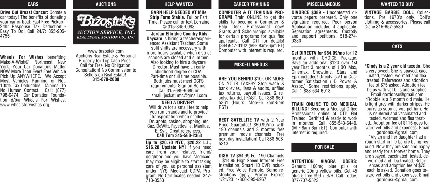 New 2022 Jeep Renegades New 2022 Jeep Gladiator!! New 2022 Jeep Compass 12 IN STOCK All New DIESEL ROUTE 481 315-598-8118 Thank You... Thank You Very Much Tom Gilbo See Entire Inventory At: WWW.PAR-K.COM Home of the Your JEEP Connection PROTECT YOUR ASSETS • Asset Protection • Estate Planning • Probate Administration Law Office of Shawn W. Lappin 201 2nd Street, Liverpool, New York 13088 (315) 699-3914 shawn.lappin@lappinlaw.com ALFRED W. F ERGERSON ~ PATRICI A H. F ERGERSON The Fergerson Home ~ Since 1826 ~ A Family Service ~ Serving Families 215 South Main St., N. Syracuse, NY 13212 FERGERSON FUNERAL HOME, INC. 124270