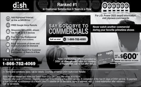March 27, 2024 7 eagle News CNy’s Community News s ource PENNY SAVER BUSINESS SERVICE DIRECTORY Call Patti @ 315-434-8889, ext. 321 to get your ad in. Deadline: Wednesdays at 7pm. NY S oul A dventure S eminar: Eckankar-Y our B ridge to S piri tual Freedom: Immerse yourself in a weekend of spir itual explorati on: workshops talks interact ive discussi ons, on dreams, karma, spiritual exercises and mast ers New to ECK ? FREE https://eckankar-n y org/nyseminar2024 LAND FOR SA LE: 15 44 A cres of Residential Land for Sale on 60 Rd in Bal dwi nsvi ll e NY l ocated wi thi n the P UD of the Radisson C ommuni ty C al l Qui nn Hubbard @ 315-47 9-3208 or emai l quinn hub bard@ esd ny gov for more informati on or to make an offer www brzostek com Aucti ons Real Estate & Personal P roperty for Top Cash Price C all for Free No Obligation C onsultation! No Commissi on to S el lers on Real Estate! 315-678-2000 NEWLY BUILD C ABIN ON 15 ACRES Tucked in on 15 05 acres (2989 Potter Rd - REDFIELD N Y) this cabi n offers great seclusion but is al so close to area amenit ies Enter through a screened porch whi ch offers a comfortabl e spot to enjoy your morning coffee or evening cocktail Cabi n has kitchen di ni ng living room combo with vaul ted ceil ings and wood stove to keep you warm on those chi lly ni ghts Loft area for sl eepi ng Main floor does have a room current ly bei ng used for st orage t hat can be convert ed i nto a bathroom Gravel driveway & par king area has been installed along wi th pathway to outhouse Hop on your ATV or Snowmobile and enjoy- al so the Salmon Ri ver Reservoi r is only 7 mi ns away! Contact Ci ndy Mears 315-4087366 ASA P for a showing AUC TIONS HELP WA NTED MISCELLANEOUS MISCELLANEOUS A NNOUNCEMENTS FOR SA LE WA NTED TO B UY HOMES LAND FCP NY FCP NY FCP NY FCP NY ELEC TRI CAL HOME IMPROV EMENTS LAWN CA RE V INTA GE B ARB IE DOLL C ol lect ions Pre 1970 s only Doll s clothi ng & accessori es P lease call Di ane 315-657-5589 HELP WANT ED: Small Lawn Mai ntenance Company i s in need of a Lawn person and Mowing person with knowledge of Ferris Walk behind Mowers Needed Immediately Serious inquiries onl y Pl ease Must have rel iable transportation The business is located in Fayettevi lle Manli us area C all Mike 315-687-8888 or 315-427- 5763 (text only) DIRECTV Sports Pack - 3 Months on Us! Watch pro and college sports LIV E P lus over 40 regi onal and speci al ty networks included NFL C oll ege Football MLB NBA NHL Golf and more S ome restrictions apply C al l DIRECTV 1-888-534-6918 DIV ORCE $389 - Uncontested divorce papers prepared Onl y one signature requi red Poor person A pplication i ncluded i f appl icable S eparatio n agreements C ustody and support pet itions 518-2740380 Get DI SH Satell ite TV + Internet! Free Instal l, Free HD- DVR Upgrade, 80 000 On-Demand Movies P lus Limited Time Up To $60 0 In Gi ft Cards Call Today! 1-866-7824069 S AVE ON Y OUR TRAV EL PLA NS! Up to 75% More than 500 A IRLINES and 300,000 HOTELS across the w orld Let us do the research for you for FR EE! C all: 877 988 7 277 INJURED IN A N AC CIDENT? Don t A ccept the insuran ce compan y s f irst offer Many i njured parties are entitl ed to maj or cash settlements Get a free evaluati on to see what your case i s reall y worth 100% Free Eval uation C al l Now: 1-888-454 -4717 Be ready wi th your zip code to connect with the closest provi der V IAGRA an d CIA LIS USERS! 50 P il ls S PE CIA L $99 00 FREE Shi pping! 100% guaranteed C ALL NOW! 855-413-9574 B ATH & S HO WER UP DATES in as l ittl e as ONE DAY ! Affor dable prices - No paymen ts for 18 months! Lifetime warranty & professional i nstal ls S enior & Mi litary Di scounts avail able Call: 866-3933636 Do you need a Roof or Energy Efficient Window s & Hel p payi ng for i t? YOU MAY QUALIFY THROUGH NEW RELIEF PROGRA MS (800) 944- 9393 or vi si t NY ProgramFundi ng org to quali fy Approved appli cations wi ll have the work completed by a repai r crew provi ded by: HOMEOWNER FUNDING Not affil iated wi th State or Gov P rograms A TTENTION OX YGEN T HERA PY USERS! Discover Oxygen Therapy That Moves w ith You with Inogen P ortable Oxygen Concentrators FREE i nformation ki t Call 888-514-3044 ATTENTION: OXY GEN USERS! Gain freedom wi th a portable Oxygen Co ncentrato r! No more heavy tanks and refil ls! Guaranteed Lowest Prices! Call the Oxygen Concentrat or Store: 1-855-839 -1738 BATH & S HO WER UPD ATES in as l ittl e as ONE DA Y! Affordabl e prices - No payments for 18 months! Lifetime warranty & professi onal i nstal ls Senior & Mi litary Discounts avail able Call: 866-393- 3636 B EST SA TELLITE TV with 2 Y ear P rice Guarantee! $ 59 99/mo with 190 channels and 3 months free premium movie channel s! Free next day i nst al lation! Call 888-570-0887 C OMP UTER IS SUES? FREE DIA GNOSIS by GEEKS ON SI TE! Vi rus Removal, Data Recovery! 24/7 EMERGENCY $20 OFF ANY S ERV ICE with coupon 4 2522! Restr ict ions appl y 844-355-9106 DEN TA L INSURA NCE from Physicians Mutual Insurance Company Coverage for 350 plus procedures Real dental insurance - NOT just a discount plan Do not wai t! C all now! Get your FREE Dental Information Kit with all the detai ls! 1-855-434 -9221 www dental50plus com/44 #6258 DIREC TV S ports Pack - 3 Months on Us! Watch pro and coll ege sports LIV E P lus over 40 regi onal and specialty net works included NFL C oll ege Football MLB NB A NHL Gol f and more Some restrictions apply Call DIRECTV 1-888-534 -6918 DISH Network $59 99 for 190 C hannel s! Bl azing Fast Internet $19 99/mo (where avai lable ) Switch & Get a FRE E $100 V isa Gift Card FREE V oi ce Remote FREE HD DVR FREE Streami ng on ALL Devi ces Call today! 1-866-713-1595 DIV ORCE $ 389 – Uncontested di vorce papers prepared Only one signat ure required Poor person Appli cati on i ncluded if appl icable Separati on agreements Custody and support petit ions 518-274-0380 Do you need a Roof or Energ y Efficient Windows & Hel p paying for it? YOU MAY QUALIFY THROUG H NEW RELIE