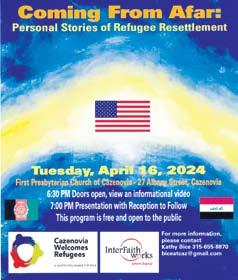 On Tuesday, April 16, Cazenovia Welcomes Refugees will present “Coming From Afar: Personal Stories of Refugee Resettlement” at the First Presbyterian Church of Cazenovia.
