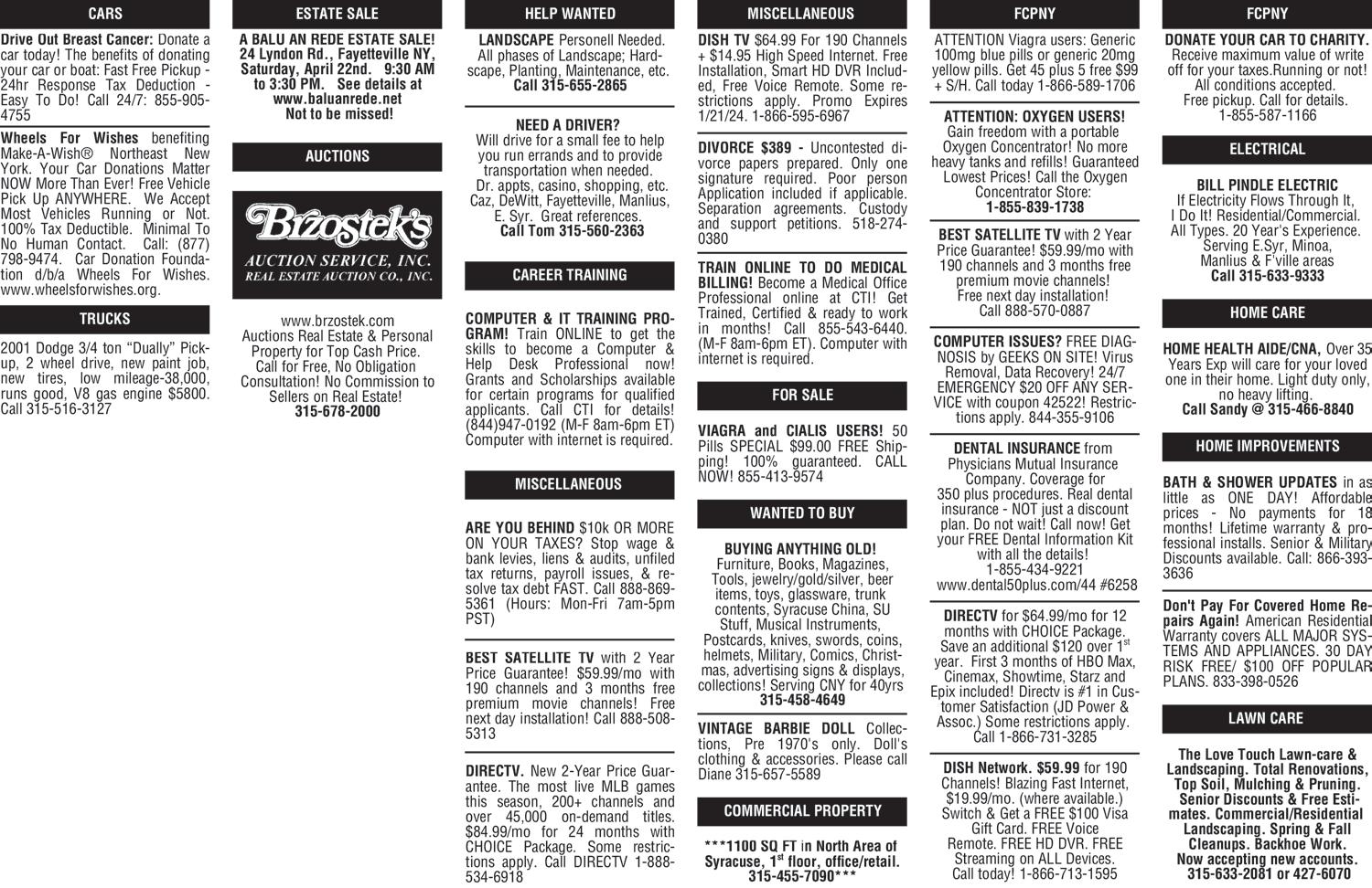 Classified Advertising: Patti Puzzo, ext 321 ppuzzo@eaglenewsonline com