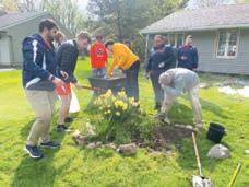 The Liverpool high School Unified Basketball Team dodged the rain (and some hail) to celebrate Earth Day at the school. Students cleaned up trash found on the lHS Campus, before splitting into groups. One group cleaned up the flower bed outside the Wetzel road Building and planted new flowers for the spring, while the second group visited a neighbor’s home on Aurora Path to add mulch, create a rock bed and plant sunflowers. representatives from Kohl’s joined the team on Aurora path to help beautify the front yard. Kohl’s provided the team with funding for the mulch, flowers and supplies. Afterward the LhS Unified Basketball headed back to the high school to enjoy dinner from Twin Trees.