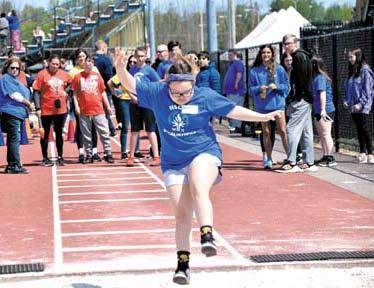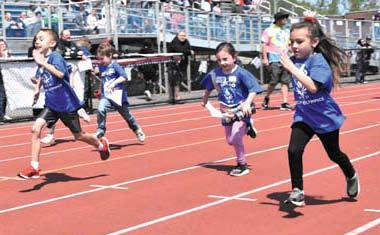 The athletic complex at cicero-North syracuse High school was abuzz with activity last Thursday as special Olympians from many area school districts arrived to compete in a variety of track and field events. At right, sophia Abruzzese of cicero-North syracuse High school takes off in the long jump competition. Below left, athletes from Westhill and North syracuse school districts get ready for the 100-meter dash at the special Olympics. Below right, young special Olympians from the North syracuse school district charge down the track in the 100-meter competition.