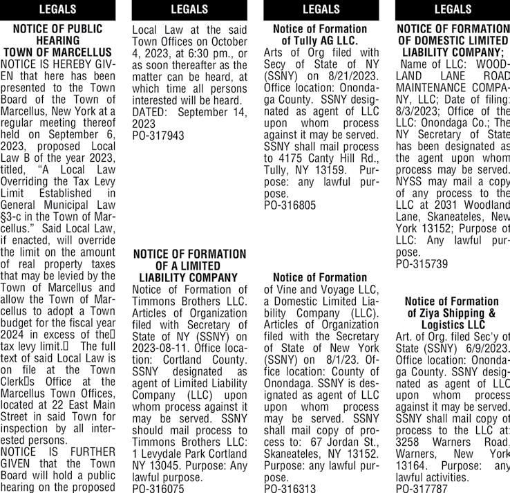 8 sept 20, 2023 eagle News cNy’s community News s ource PENNY SAVER CLASSIFIEDS/GENERAL Visit our self-service site at www.theclassifiedsuperstore.com or call 315-434-8889, ext. 321. Deadline: Wednesdays at 7pm.