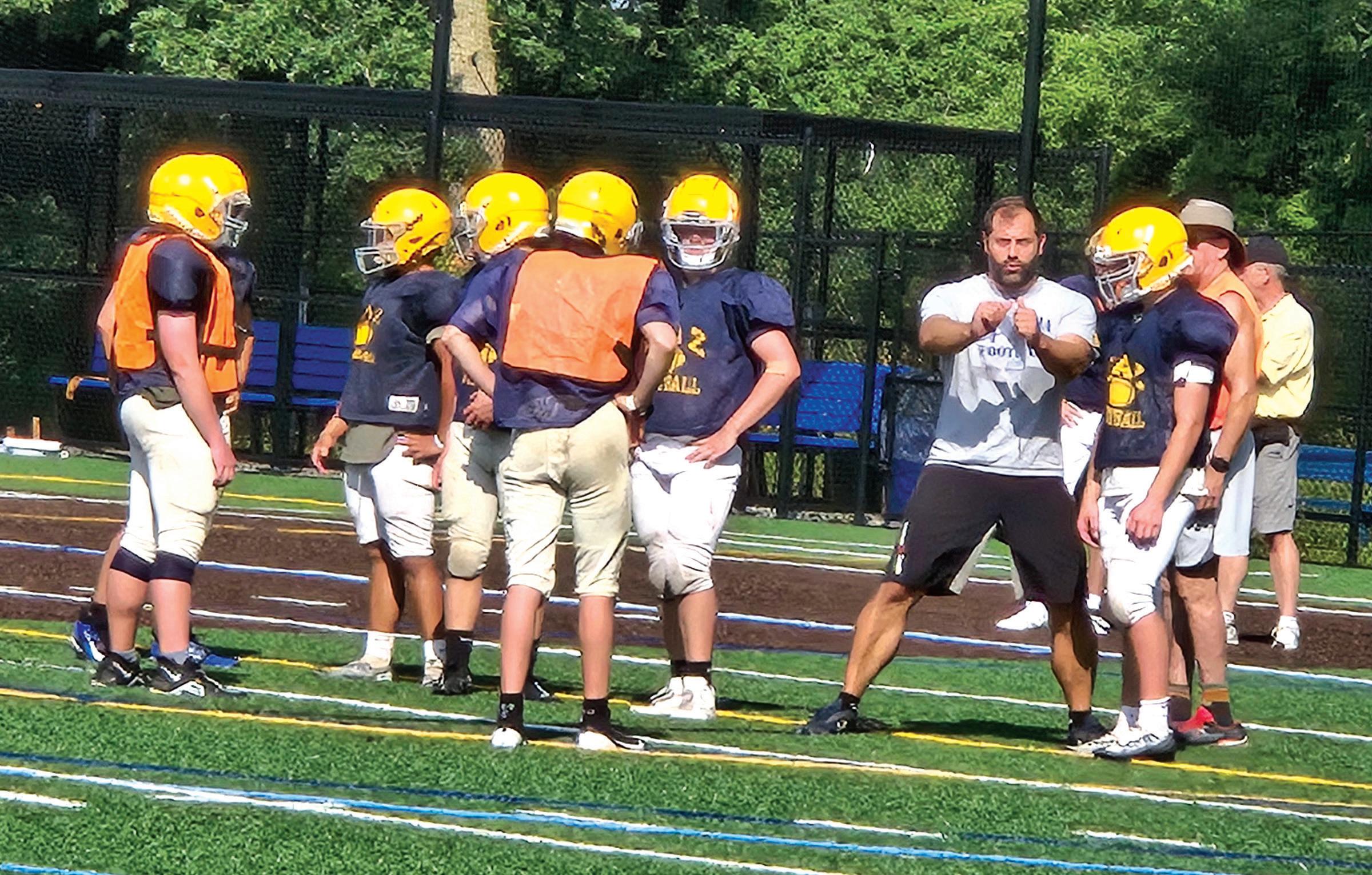 phil blackWell Cazenovia football head coach Kyle Martin instructs his players during last Monday’s practice. the lakers’ season opens Sept. 14 against General Brown on the new turf at Buckley-Volo Field.
