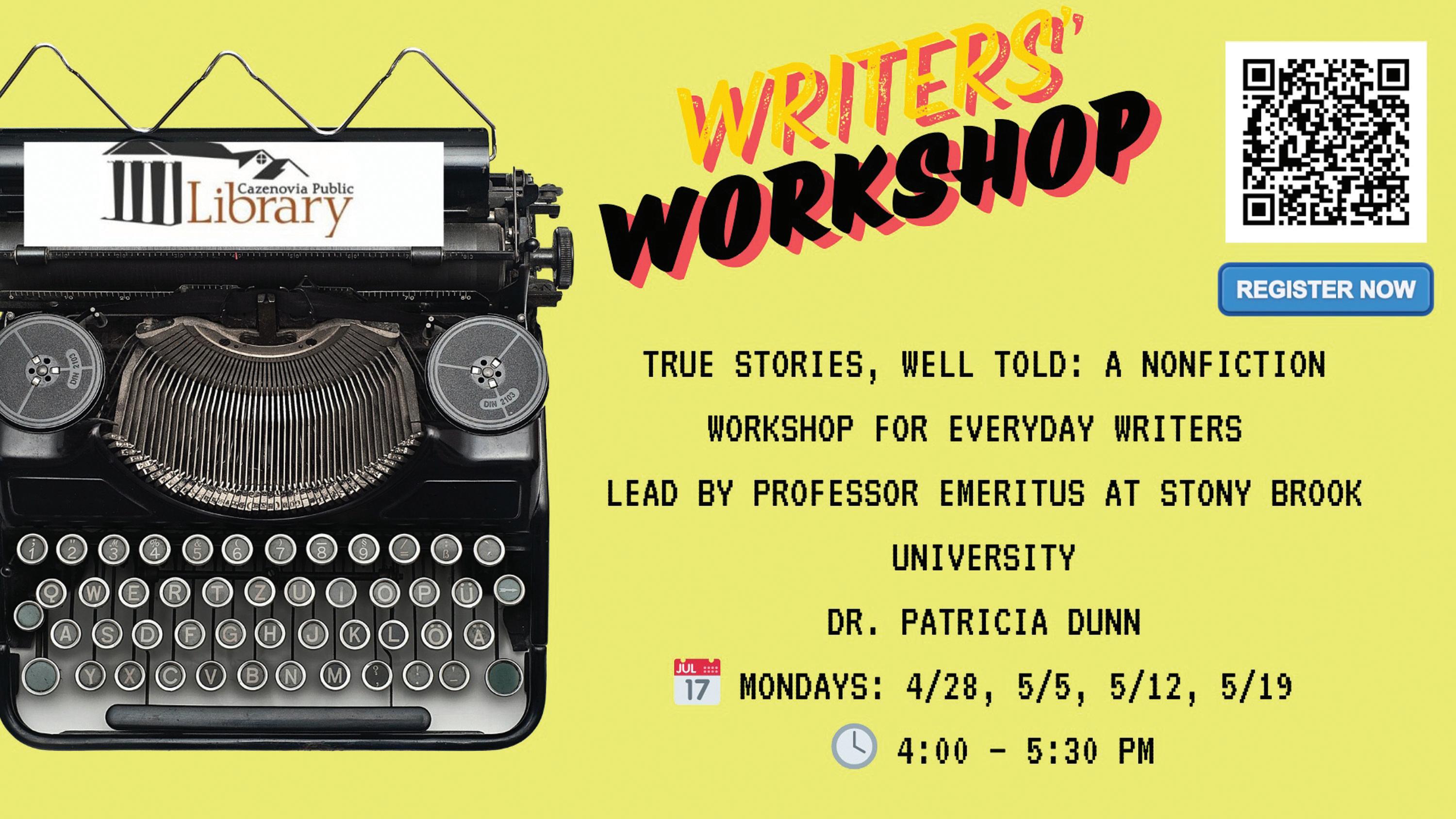 This spring, the Cazenovia Public Library (CPL) will host a four-part nonfiction writers’ workshop series with Stony Brook University Professor Emerita Patricia Dunn.