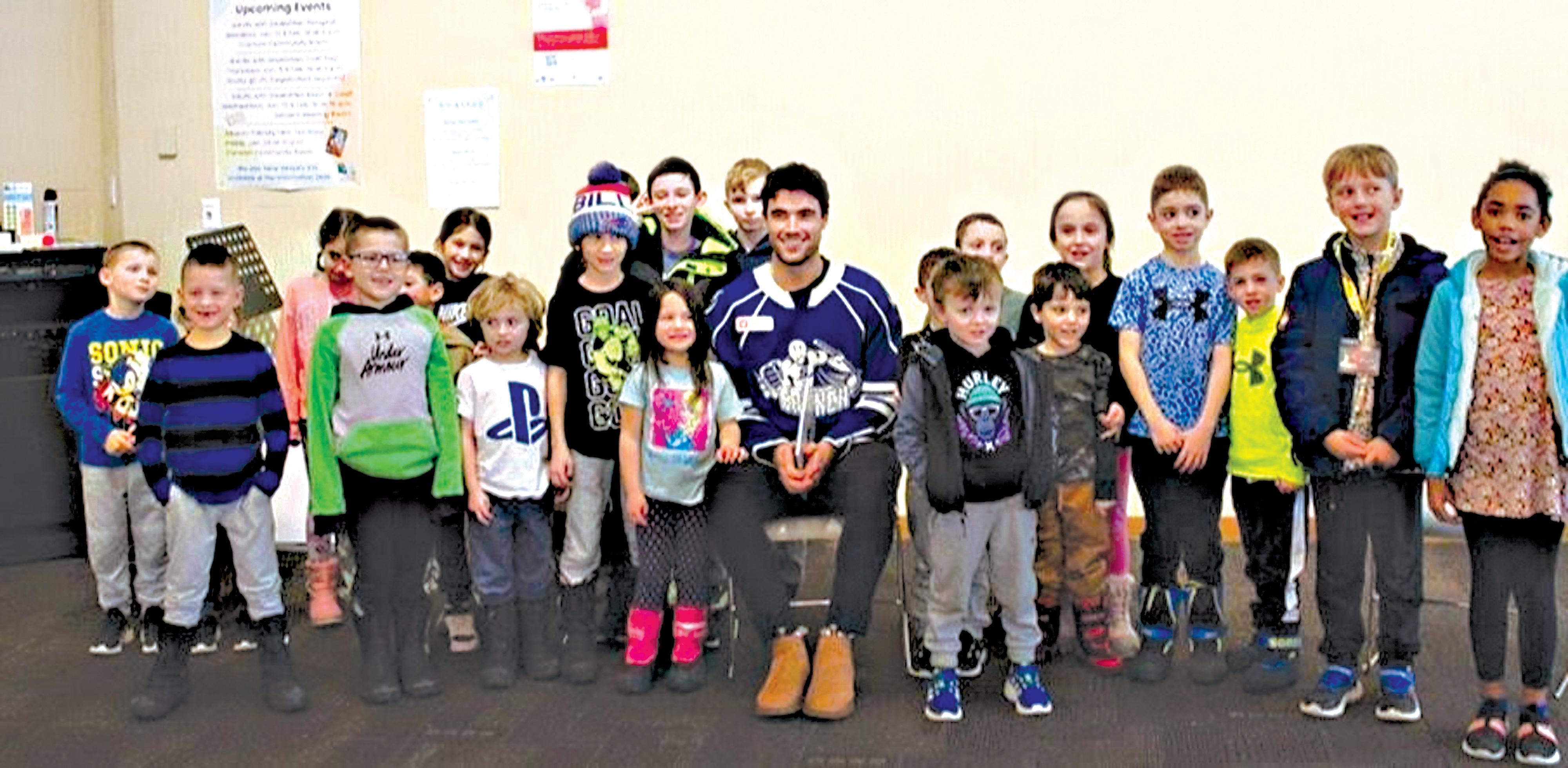 who joins a local peewee hockey team. Children had many great questions for the hockey player including, “How much do you practice?”, “What are your pre-game rituals?”, and humorously, “Why do hockey players fight so much?”