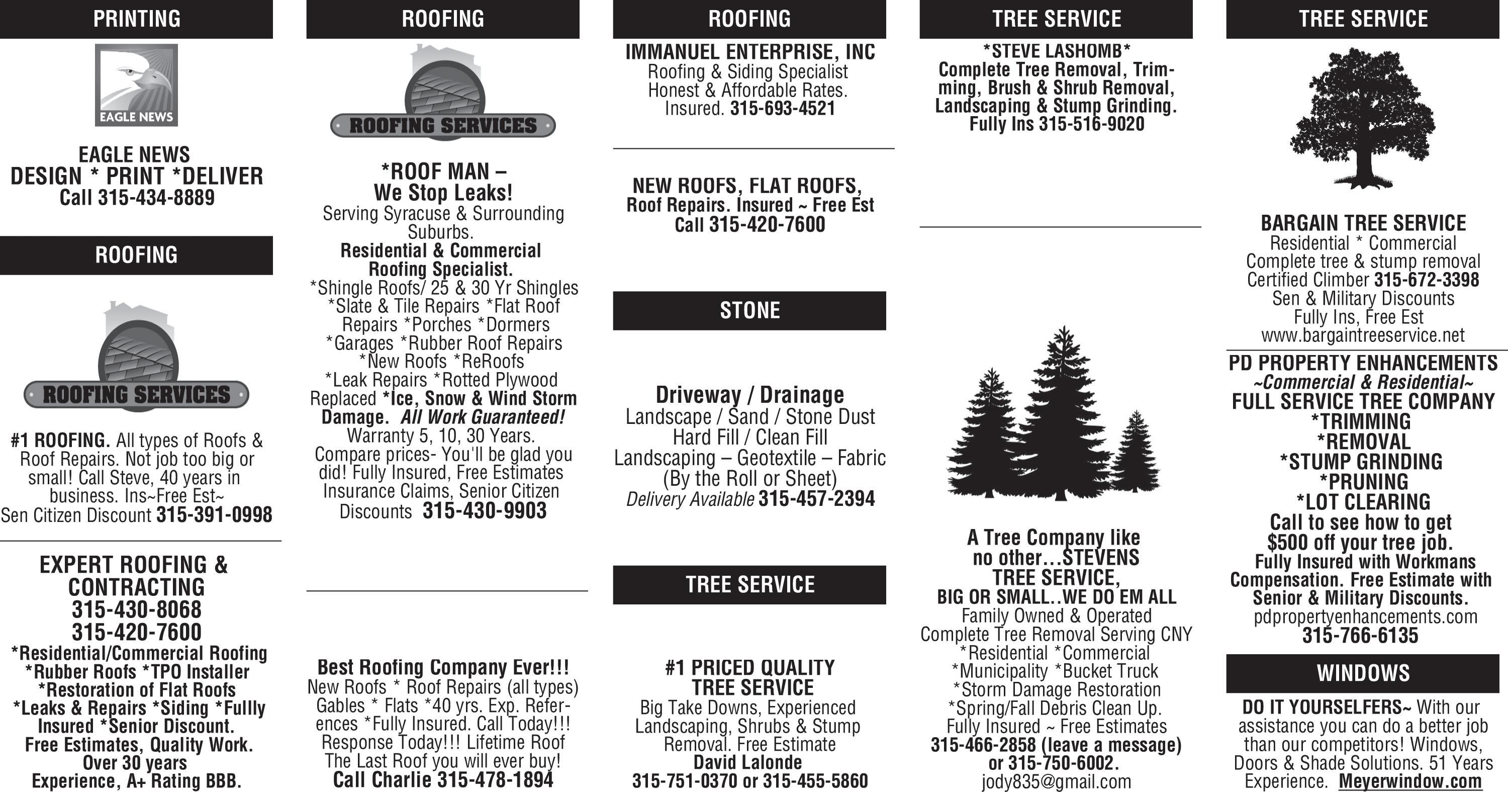 Classified Advertising: Patti Puzzo, ext 321 ppuzzo@eaglenewsonline com