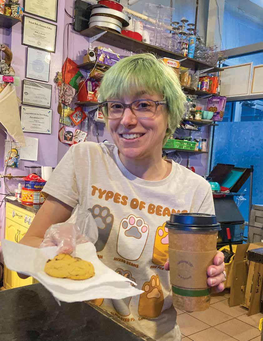 After getting past the challenge of opening a business during a pandemic, Alisha helped the cafe grow into a place where people can gather and where small businesses and local makers can collaborate. In the cafe area, visitors can buy locally crafted clay cats, crocheted cat loaves, cat-shaped pride magnets, and other unique trinkets. The cafe has expanded to the stage where it can host monthly events. Visitors can check Pawsitivitea’s online calendar and plan to attend Dungeons and Dragons nights, paint and sips, “bean”go, live cat drawing, “mew”-vie nights, cat yoga, metaphysical night, and more.