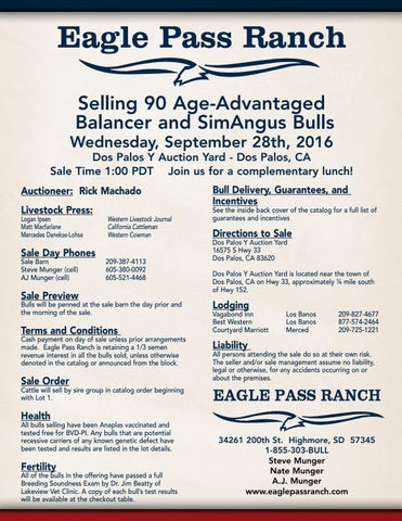 34261 200th St. Highmore, SD 57345 1-855-303-BULL Steve Munger Nate Munger A.J. Munger www.eaglepassranch.com