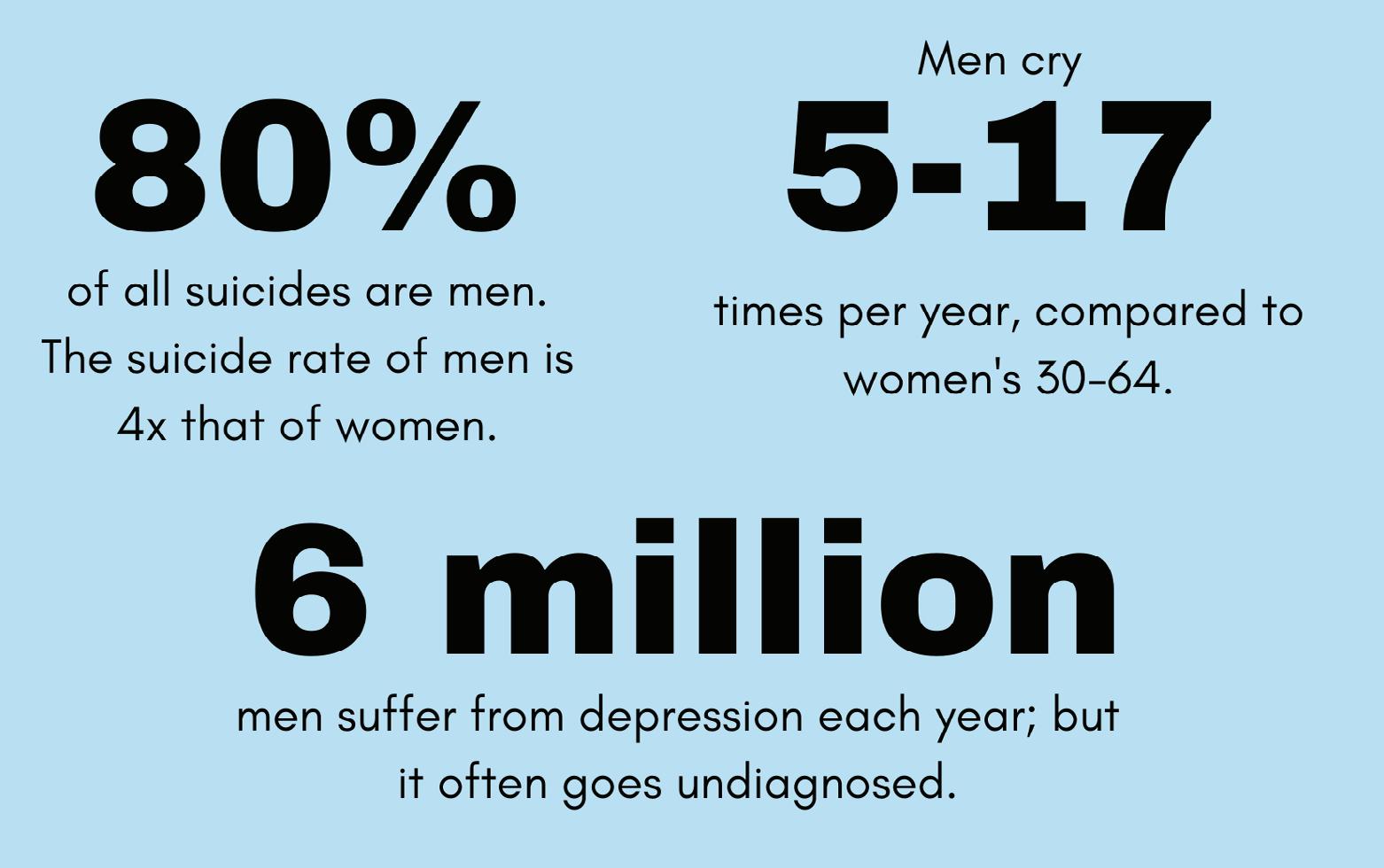 It’s a well known fact by now that men have high suicide rates, and men being told they can’t cry likely contributes to that. According to Renewal Health Group, men’s suicide rate were about 90 times higher than that in women. Telling men they can’t cry likely helps contribute to this statistics and cause more mental health issues with in men.