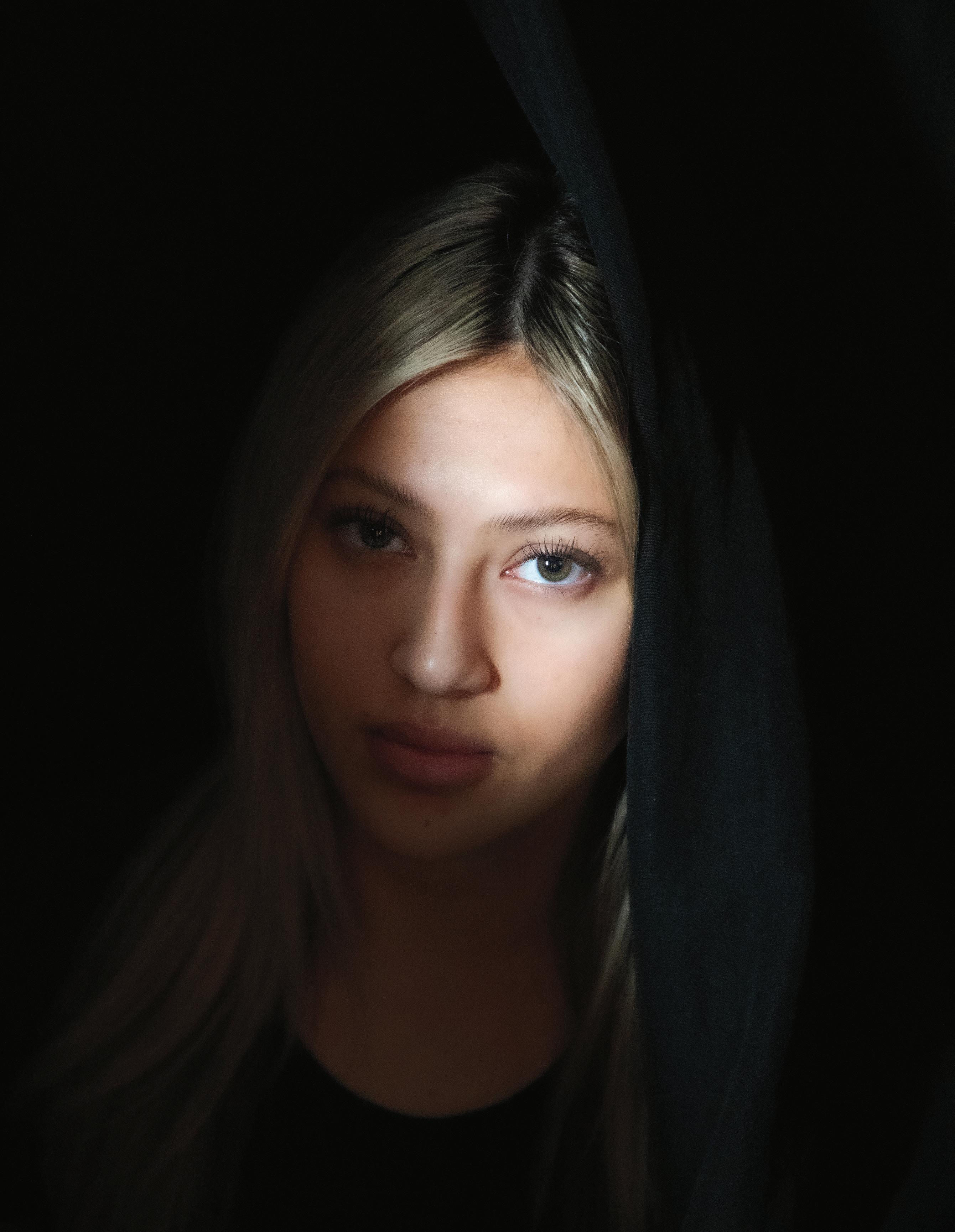 Alex GribbAn anonymous female student poses behind a bright spotlight, which conceals her face. The spotlight is symbolic of what many sexual assault survivors experience: the choice between sharing their story, or staying silent.