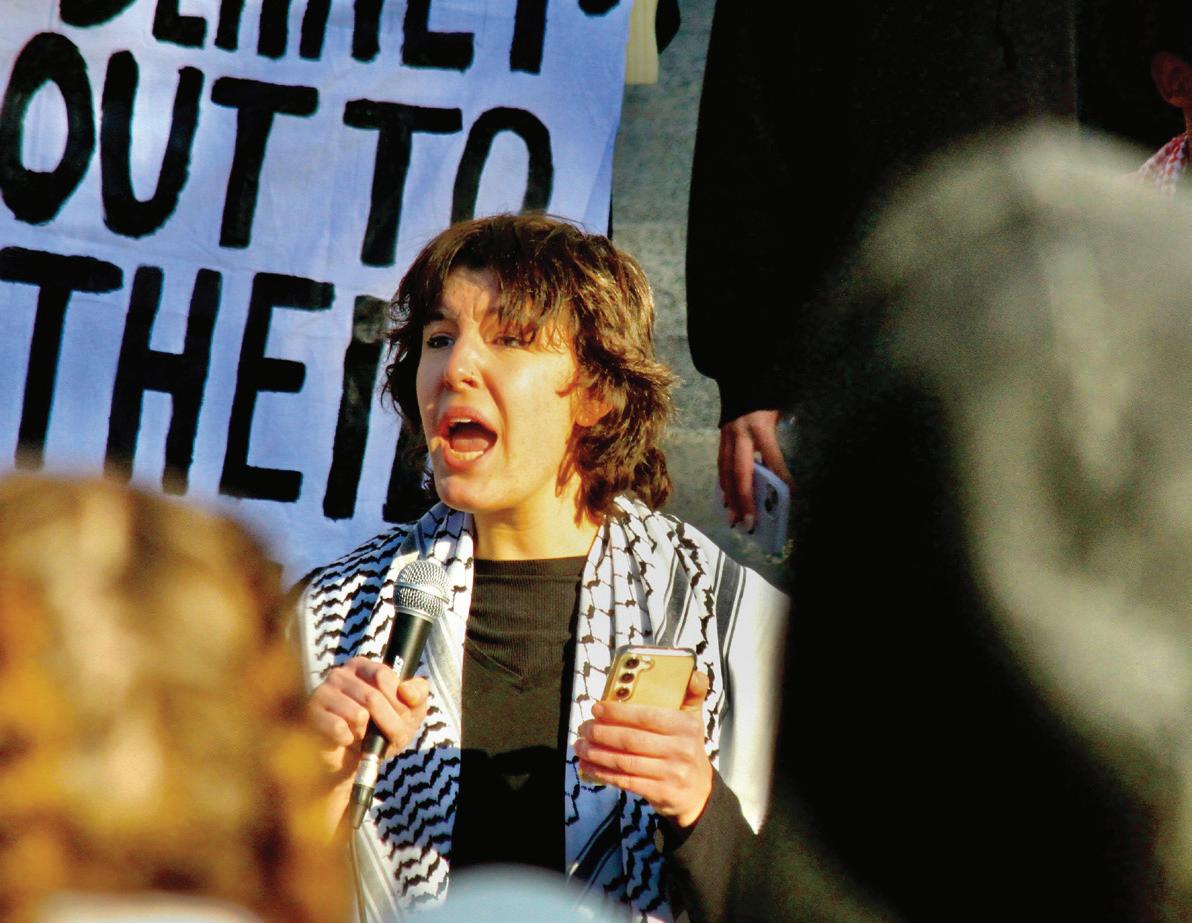 Skye was one of the first speakers at the protest. She led chants and criticized legislators for supporting Israel. Gen-Z, high school-age Americans like her, are one side of a sharp ideological divide between ages in the US.