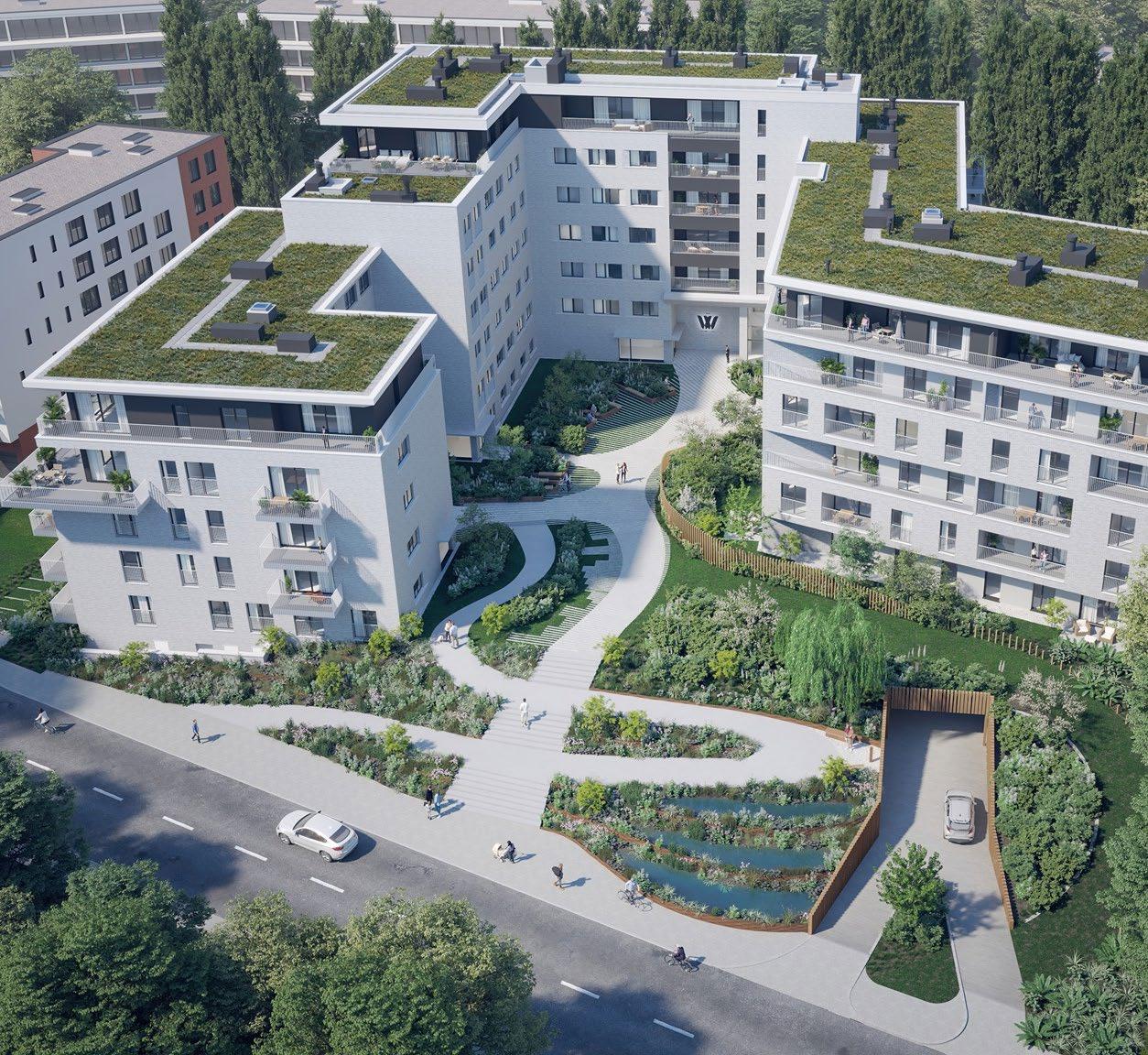 La Cerisaie s’étire sur plus de 4 500 m2, nichée dans un cocon végétal. Déclinée en 3 bâtiments à taille humaine, elle promet l’équilibre parfait entre nature et habitat.