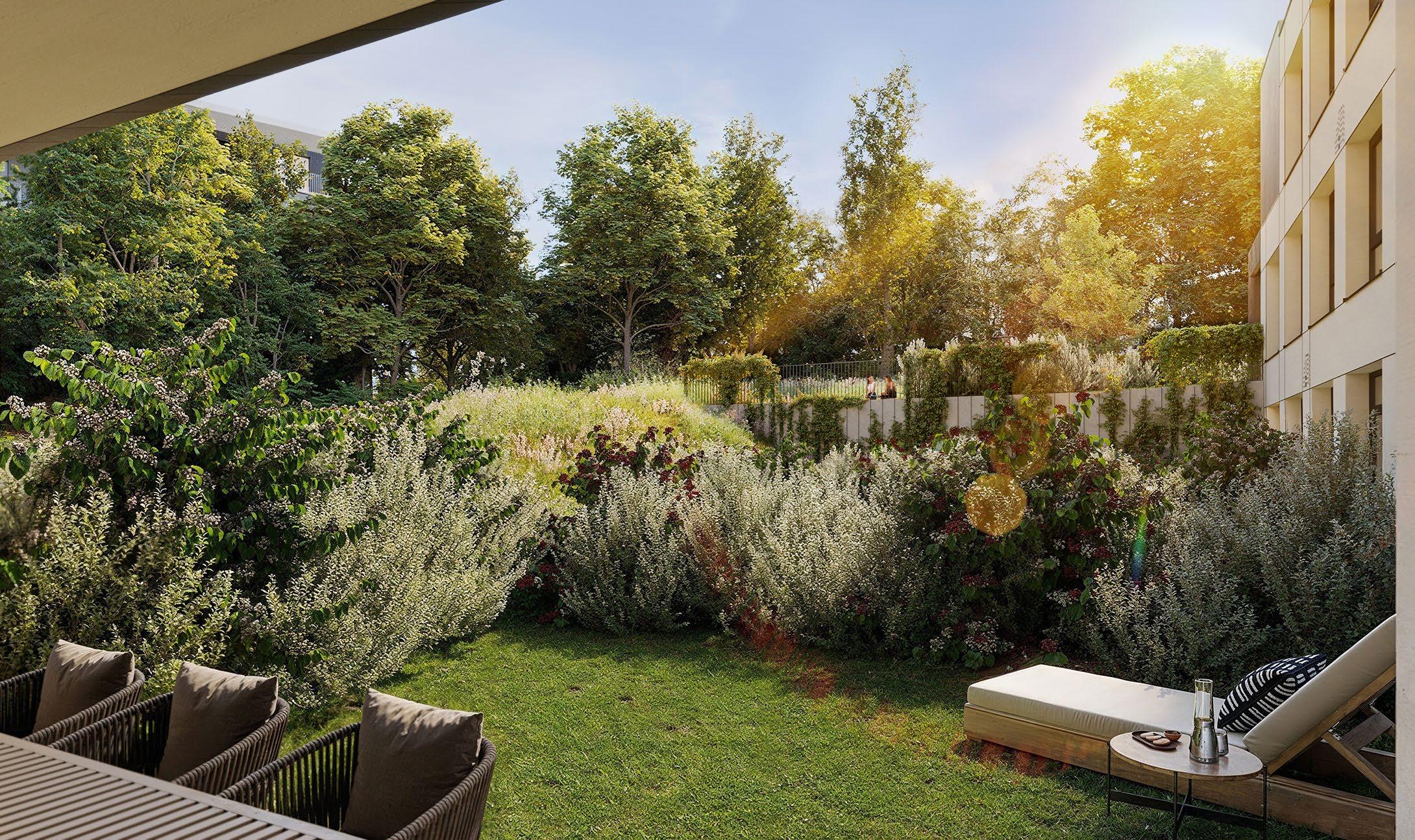 Disposés en quinconce, les bâtiments offrent des échappées infinies vers des espaces boisés et paysagers, constitués d’arbres nobles et d’essences locales. Les appartements en étage profitent de vues panoramiques sur les aménagements du Parc Canopée : l’étang, l’espace jeux pour enfants, les parcours de promenade ou encore les jardins thématiques.