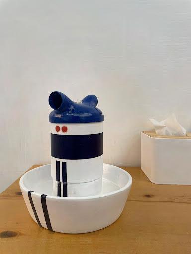 18世紀時人們喝咖啡是拿盤子就口,此次設計聚焦在 盤子上,希望這樣的造型能讓現代人對以前的盤子喝 法感到有趣,也想要加上近幾年來出現的感溫變色技 術,喝咖啡不用嘴巴去試溫度,我們可以‘看’見溫度。