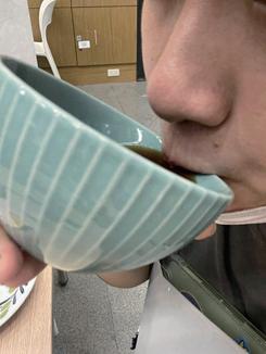 盤子好拿,面積大散熱快,紋路啜飲方便 塗上感溫色料可看見溫度變化