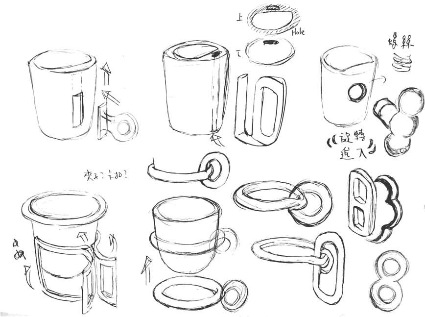 分為杯子、蓋子左、右 蓋子兩側一側是咖啡出口一側是奶精容器 組合 組合物件