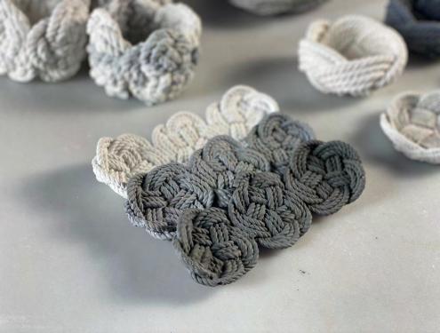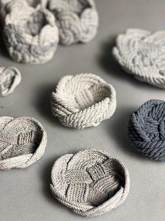 麻繩編織而成的五瓣花 透過水泥來重新詮釋