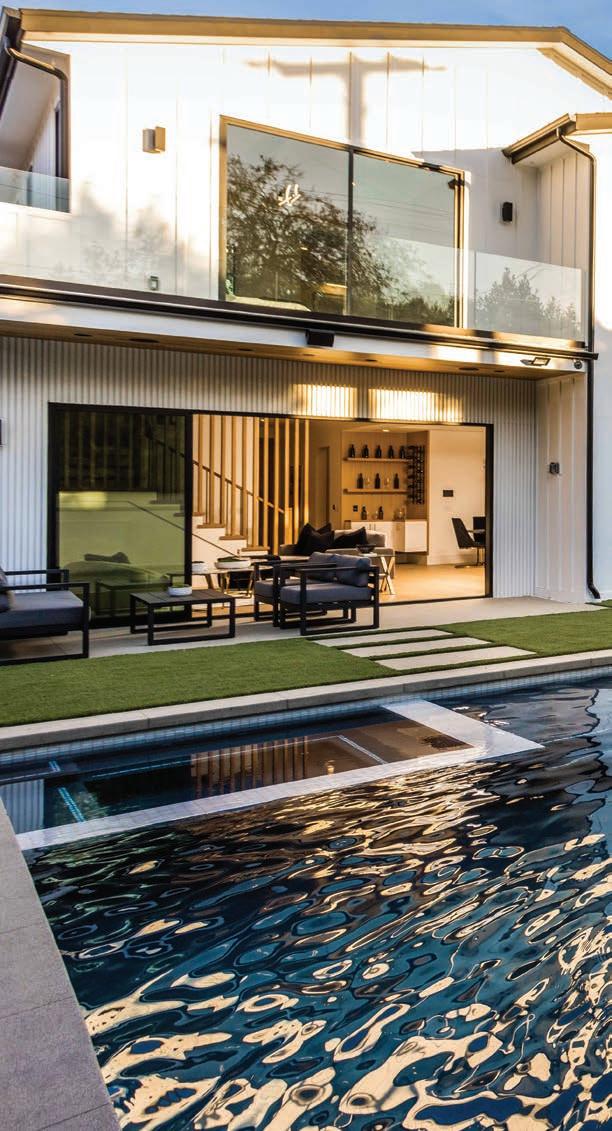 Stunning New Construction Cap Cod Contemporary Farmhouse in prime Studio City. Designer perfect two-story transitional 5 bed, 4.5 bath home built in 2022! Open airy floor plan includes a spacious living room with fireplace and dining room, plus a sensational family room with fireplace and bi-fold doors opening to a covered patio, outdoor kitchen, grassy yard, and beautiful pool and spa. The elegant center island kitchen with breakfast room features Marble counters, stainless appliances including 8 burner range and hood, double oven, dishwasher, as well as a beverage fridge, and pantry. One bedroom suite and powder room complete the downstairs and laundry room. Upstairs offers a dazzling master suite with vaulted ceilings, fireplace, balcony, walk-in closets, and a luxe bath, as well as three additional bedrooms. Other amenities include wide plank European Oak hardwood floors, dual-zone Nest controlled HVAC and a fully wired smart home with a security system and cameras. Walking distance from all that Ventura Blvd has to offer, this smart home features 5 en-suite BD, BA, and an open living space set up. Enter to find a stellar open-concept floor plan w/ natural light beaming throughout. The cozy family room is equipped w/ fireplace and glass doors that create the idyllic indoor/outdoor California lifestyle. The chef’s kitchen is complete w/ all the amenities including high-end appliances, walk-in pantry and center island. Offered at $3,588,888