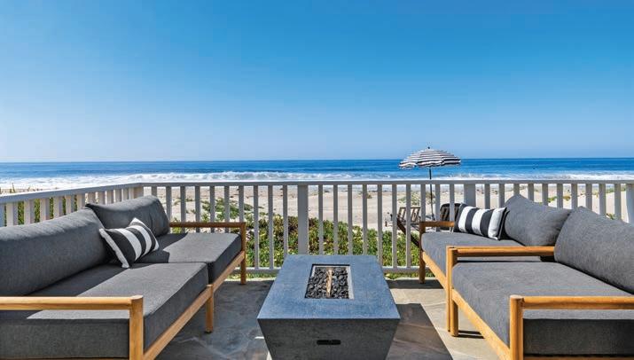 Malibu coastline and Cape Code-style combine for easy living on wide, flat Trancas Beach, with ocean views, sandy shoreline, and plenty of room for indoor-outdoor living and entertaining. A gated entry opens to a fountain breezeway and a spacious private courtyard complete with a flagstone fireplace, lounge seating, and a covered Jacuzzi with a waterfall | 5 bed | 5 bath.