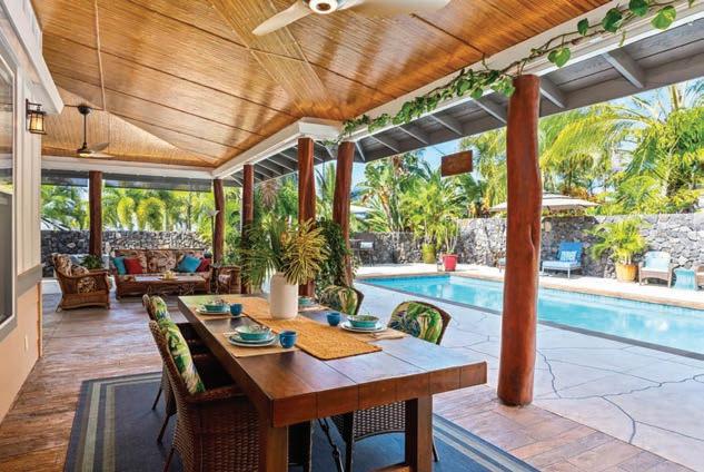 Welcome to your gorgeous 3-bedroom 2.5 bath home on a .75-acre lot. 720 sf of lanai Lush green lawns, fruit trees, palms & plumerias, lava pavers, solar lights. Resort style pool & an ocean view. Tropical outdoor living at its best on your huge lanai w/Ohia post, bamboo ceilings & Haiku ceiling fans. A gazebo w/fire pit, ceiling fan & lights. The pool deck surrounds the 11’ solar heated pool w/ dolphins & marine murals & underwater lighting. Enjoy Al fresco dining & BBQ complete w/Tiki torches, outdoor TV. Photovoltaic & Central A/C. $1,725,000