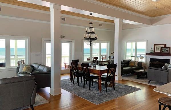 Stunning Gulf Front showplace with Main House & Carriage House to provide 5 bedrooms, 5.5 baths in 4800+ square feet of indoor space. Owners selected the most spectacular high end furnishings to create a luxurious Gulf Front retreat with impressive views of the natural surroundings. Enjoy a deluxe chef’s kitchen with the finest appliances. Relax around the firepit or watch for passing ships from the spectacular decks overlooking the water. Each room is unique & deftly appointed to create a vision of relaxed elegance throughout the home. You will appreciate the nod to luxury & superlative comfort for you & your guests. Exterior doors & Weather Shield windows turtle glass. Azek rails & decks surround the house. Elevator access to all floors. The gated community has a high-caliber reputation & you will love the beautiful wide beaches.
