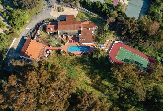 This spectacular Mediterranean estate, completed in 2021, represents the epitome of luxury living and embodies premier design, finishes and amenities. Immaculately constructed and set behind gates in coveted Royal Hills this is a true private compound, featuring a stunning main house, luxurious detached guest house, expansive resort type backyard and a unique art inspired swimmers infinity pool and spa that forge an effortless connection with jaw-dropping views. No detail has gone overlooked or expense spared, with broad use of stone, porcelain tile, marble and slate throughout the main house. A showstopper upon entry, highlighted with striking curvilinear walls and arched doorways, high vaulted ceilings, and flooded with natural light through walls of glass looking out to the grounds and astonishing views. Featuring 5 bedrooms and 7 bathrooms, numerous custom fireplaces, and multiple areas to relax and enjoy the views and zen like atmosphere, this custom home features a sun drenched open floor plan equally ideal for comfortable family living and entertaining at the highest level.