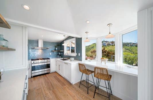 Nestled in the heart of the coveted North Laguna Beach community, this charming, completely renovated cottage home embodies the essence of coastal living. Boasting picturesque ocean, Catalina and hillside views & just a stone’s throw away from some of the area’s most renowned beaches & Laguna Village. This property represents an unparalleled opportunity to live the quintessential Southern California lifestyle & captures the cool ocean breezes. Upon entering this enchanting abode, guests are greeted by an inviting great room, complete with high vaulted ceilings, romantic wood burning fireplace, European French Oak hardwood flooring & large Milgard windows that bathe the space in natural light. The adjacent dining area offers an intimate setting for meals, while the gourmet kitchen is outfitted with new Fisher Paykel dual fuel-electric oven with 5 gas burners, warming drawer, refrigerator, stainless steel sink, dishwasher and ample quartz countertops, making meal prep a breeze. The indoor laundry room provides space for a full-size washer & dryer. The home’s three well-appointed bedrooms provide a peaceful sanctuary for rest and relaxation, each featuring serene color palettes, vaulted ceilings, recessed lighting, and ceiling fans. The primary bedroom enjoys high vaulted ceilings and dreamy sunset views. The two stylishly remodeled bathrooms offer spa-like amenities, including a sleek modern shower in one and a bathtub/shower in the other, new cabinetry, sinks, faucets & quartz counters. This North Laguna Beach cottage home is the perfect retreat for those seeking a relaxed, yet refined lifestyle. www.214High.com.