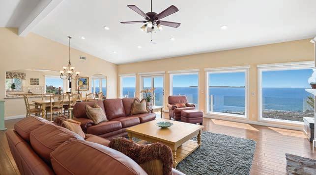 Panoramic unobstructed 180° front-row views are truly breathtaking and among the finest along the entire coast. Enjoyed from every level, the stunning vistas sweep across the Pacific Ocean, crashing waves, rocky coves, sandy beaches, dazzling sunsets, Catalina Island, and thousands of sparkling lights. Luxuriously updated, the residence takes full advantage of its setting by offering an abundance of large picture windows and doors, creating an easy indoor/outdoor flow to decks that welcome views and natural light. The open floorplan measures approximately 4,469 square feet and includes three ensuite bedrooms, and three- and one-half baths.