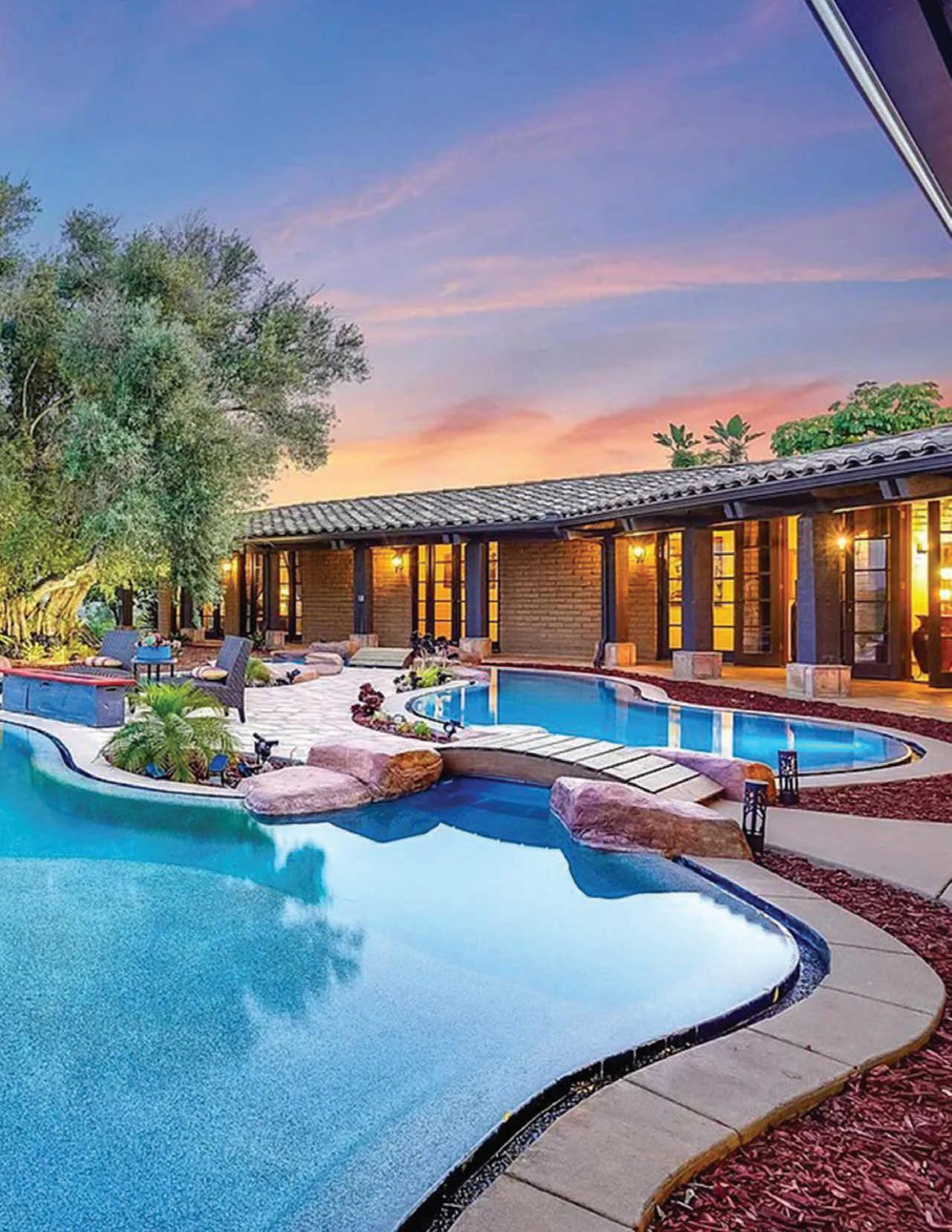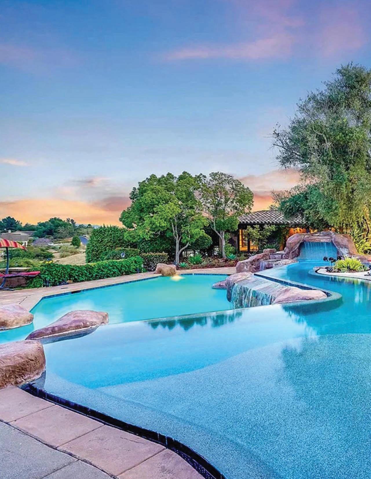 Designed by award-winning architect Dean Jones and crafted by the renowned Weir Brothers, this 7 bedroom 6 bath masterpiece is set on 2 parcels totaling 10 acres of land with two private detached guest homes! Experience grand vaulted ceilings, heated Italian wood flooring, Siematic German cabinetry, and a Miele/Wolf appliance suite. 5 wood-burning fireplaces, original hand-painted Spanish tiles, a state-of-the-art cinema, and a wine cellar! The resort-style backyard offers 360 degree views, a cascading pool featuring a grotto, lazy river, and waterfalls! Perfect for horse lovers or anyone looking to have supplemental income. Offered at $3,995,000