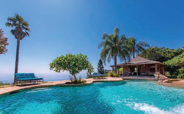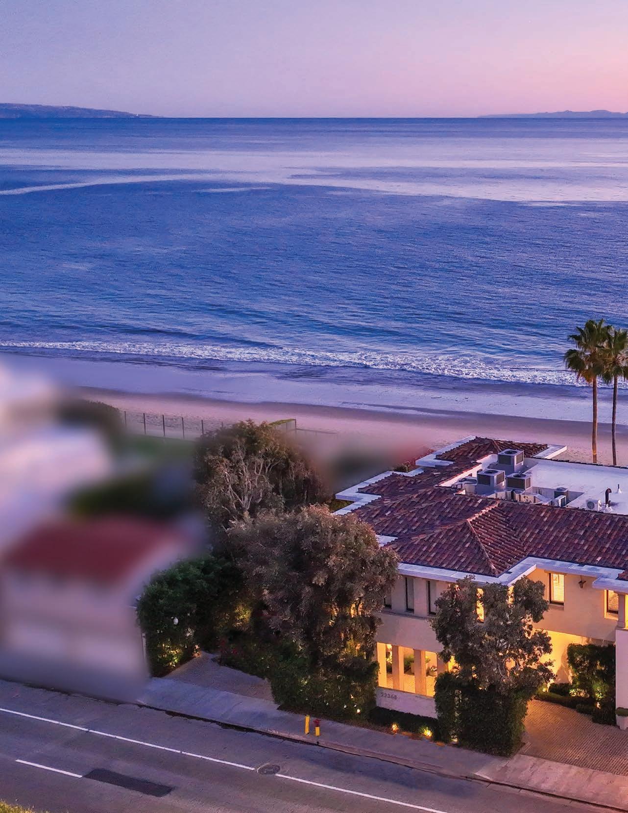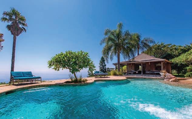 Breathtaking gated ocean-view estate with tropical gardens, fountain courtyard, high wood-beamed ceilings, arched doorways and windows, and hardwood floors. Live and entertain in true Malibu style. 3 bedrooms | 6 bathrooms.
