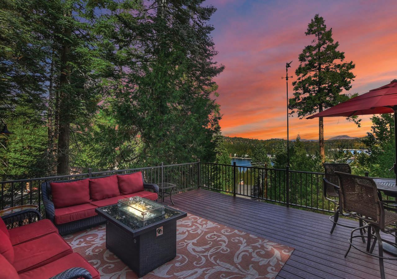 Gorgeous high-end custom built home sitting Lake Side in the gated community of North Shore Estates. Views of the lake from the deck and the master suite with more expansive Lakeviews in the fall, winter and spring when the oak leaves have dropped. Stroll down the adjacent path to your DOCK, N-61A available for $300K extra. (Approx. a 5 minute walk.) This pristine home offers the best of both worlds with a cozy Lodge-y look combined with Craftsman style details. Such attention to detail, throughout, and built by one of Lake Arrowhead’s most respected and talented builders, Mike Scorziell. The cathedral ceilings boasts two added timber-frame structures and the floor to ceiling rock fireplace in the living room is a stunning focal point. Phenomenal floor-plan with a most desired open “Great Room”, truly an entertainer’s dream. Well appointed and designed kitchen is an epicurean’s dream with high-end appliances, scrumptious slab granite, custom cabinetry, a double-sized walk-in pantry and two dormers that let the mountain sunshine stream through. Oversized dining area that opens to the kitchen is such a plus for friends and family gatherings. Featuring 4 bedrooms with the master suite on the main with a fireplace and private door out to the deck. Master bath features heated floors and an “escape the hustle” feel with soaking tub, and separate shower with slate floors and walls and an extra high ceiling. The family room downstairs features a 3rd rock fireplace and there are 3 additional large bedrooms and 2 more baths. And, if more living space would suit you well, there is an ADDITIONAL 500 square feet on the second level that can be easily finished off into 2 more bedrooms & baths. Or, maybe you’re looking to have a huge home theater or even an ADU? This extra space is the perfect solution! Sliders from each of two bedrooms out to lower deck are 8 feet tall to bring in more nature. The French doors out to the deck from the family room are also 8 feet high. All three decks feature new Trex decking material and the en-vogue cable railing system adds to the “just show up and enjoy” experience awaiting you. The siding and trim that is natural Cedar wood lends to the mountain feel and look. The natural wood is further complimented by the smooth stucco exterior areas that tie in with the Craftsman character. Most furnishings are available. Offered at $2,150,000